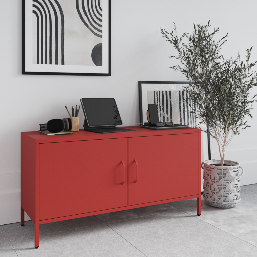 A ROSA C18L TV szekrény vibráló vörös színe és letisztult, modern dizájnja azonnal magára vonja a figyelmet. Ez a bútordarab kiválóan illeszkedik a kortárs lakberendezési stílusokhoz, és bármely nappalinak karaktert kölcsönöz.