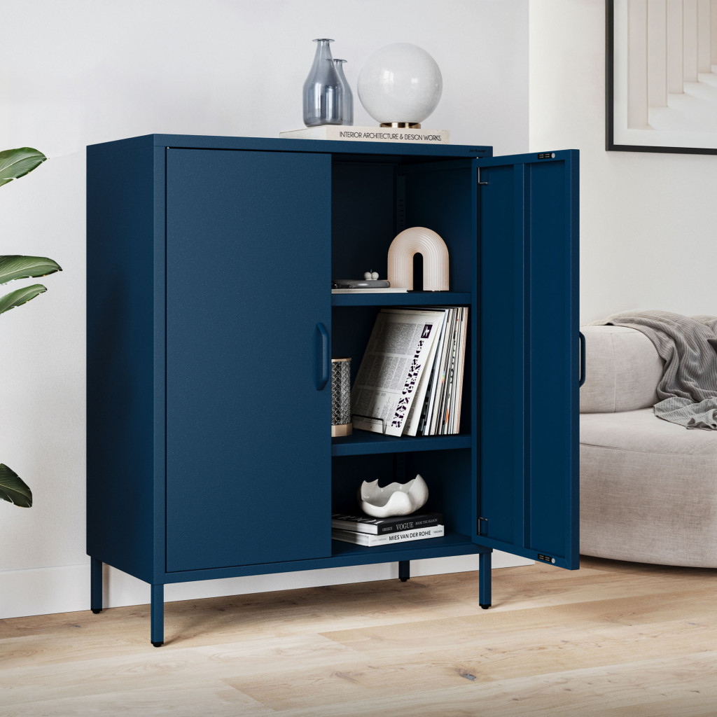 A VITO LK01 szekrény elegáns megjelenésének és praktikus kialakításának köszönhetően kiváló választás mindazok számára, akik stílusos és helytakarékos megoldást keresnek otthonukba vagy munkahelyükre. A sötétkék szín és a kompakt méretek lehetővé teszik, hogy ez a bútordarab könnyedén illeszkedjen bármilyen enteriőrbe.