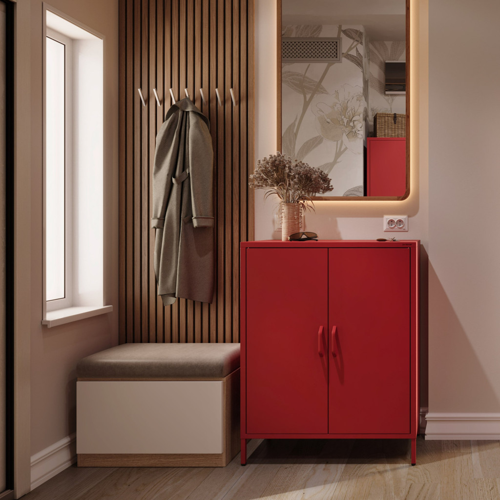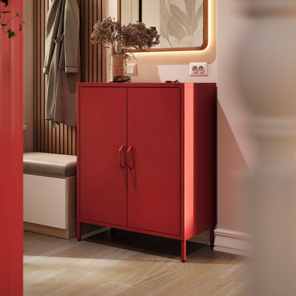A merész piros árnyalat és a modern fémkialakítás együtt egy olyan bútort eredményez, amely nemcsak tároló, hanem dekorációs elem is. A terméket magyarországi importőrtől rendelheted meg, garantált eredettel és gyors kiszolgálással.
