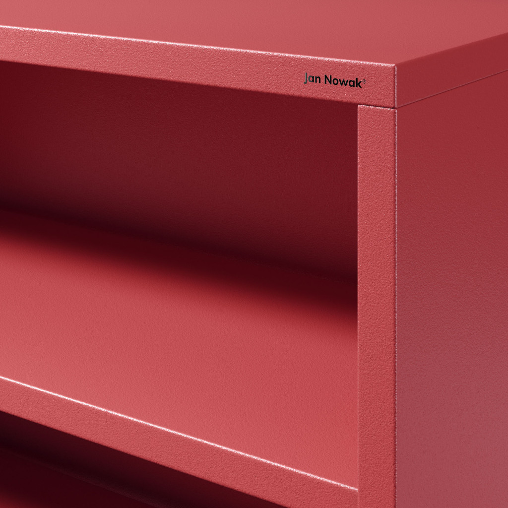 A 3 cm-es tartományban állítható szintező talpak megakadályozzák a billegést, ami különösen fontos régi épületekben vagy egyenetlen padlón. A piros fémfelület karbantartása egyszerű: elég egy nedves törlőkendő, és a szekrény visszanyeri eredeti ragyogását. A hátul elhelyezett falirögzítő pont lehetővé teszi a biztonságos felhelyezést, ami gyerekszobákban és forgalmas helyiségekben is elengedhetetlen.