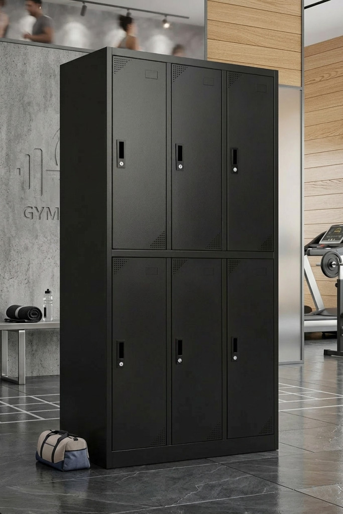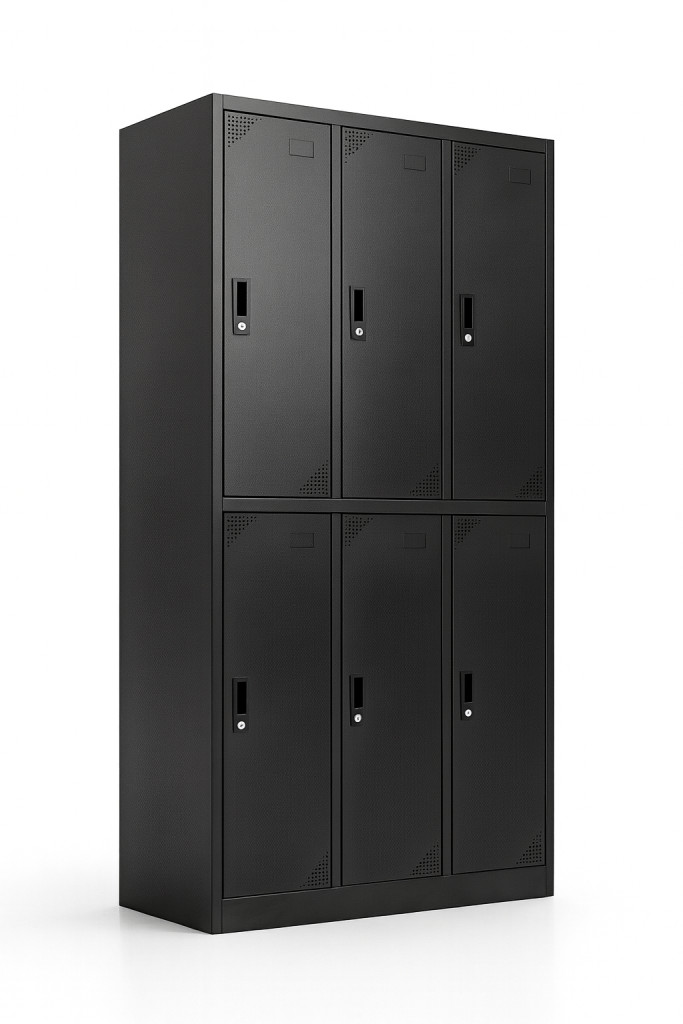 ideális választás sportegyesületeknek, iskoláknak, munkahelyeknek, gyáraknak, kórházaknak, és más intézményeknek. Ez a 6 rekeszes szekrény tökéletes tárolóhelyet biztosít összehajtott ruhaneműk, táskák, cipők számára. A kényelmes tárolást tovább fokozza a szekrényben lévő polc, ami lehetővé teszi, hogy a cipők külön helyezhetők el, így azok elválasztva maradnak a tárolt ruháktól.