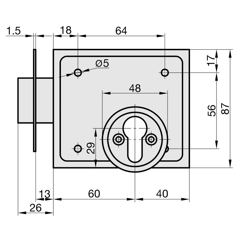 •utólagosan felcsavarozható•zárhely nélküli ajtókhoz használható•profilhengerekhez kialakítva•duplára zárható zárnyelv•cilinder mélység: 60 mm•teljes zártest mélység: 100 mm•zártest magasság: 87 mm•zártest vastagság: 16,5 mm•zárnyelv szélesség: 33 mm•jobbos és balos ajtókhoz egyaránt•zárlemezzel és cilinder címkével áruljuk