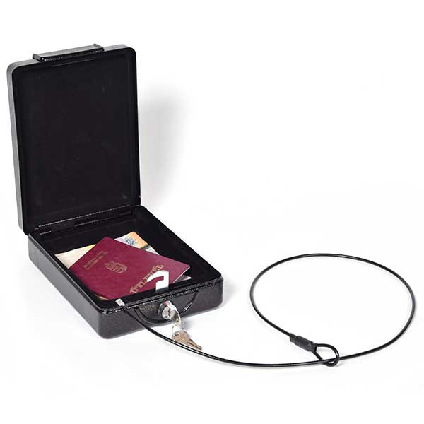 • masszív acéllemez kazetta és tartó• kazetta belseje puhán bélelt• alkalmas késméretű értéktárgyak megóvására• például mobiltelefon, MP3 lejátszó, navigáció, Ipod• felszerelhető autóba, lakókocsiba, hajóra, irodába• rögzíthető a furatokon keresztül lefelé vagy• 3mm-es, 90cm hosszú acél sodronnyal• egyszerű lamellás zár, kettő darab kulccsal• fekete színben, rögzítő csomaggal áruljuk