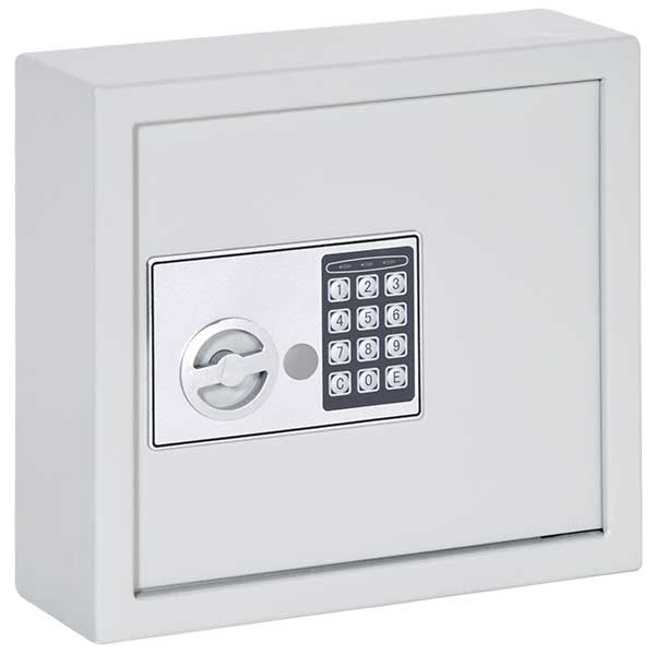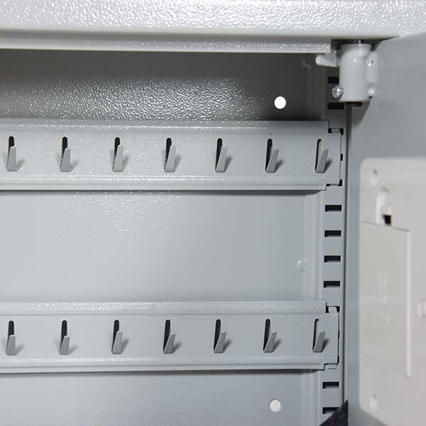 • elektronikus kulcsszekrény besurranó tolvajok ellen• kivehető, állítható magasságú kulcsakasztókkal• 2 mm-es acél test és 4 mm-es acél ajtó• 90 fokos ajtónyitás jobboldali zsanérokkal• egyirányú zárás 16 mm-es acél hevederekkel• elektronikus számkombinációs zár• 3-8 számjegy közötti felhasználói kód• 3 téves kódbevitel után 20 másodperces büntetőidő• mechanikus vésznyitási lehetőség körkulccsal• zár 4 db Mignon LR 6 AA 1,5V elemmel működik• rögzítő furatok hátrafelé• szürke színben, rögzítő csavarokkal, elemekkel áruljuk
