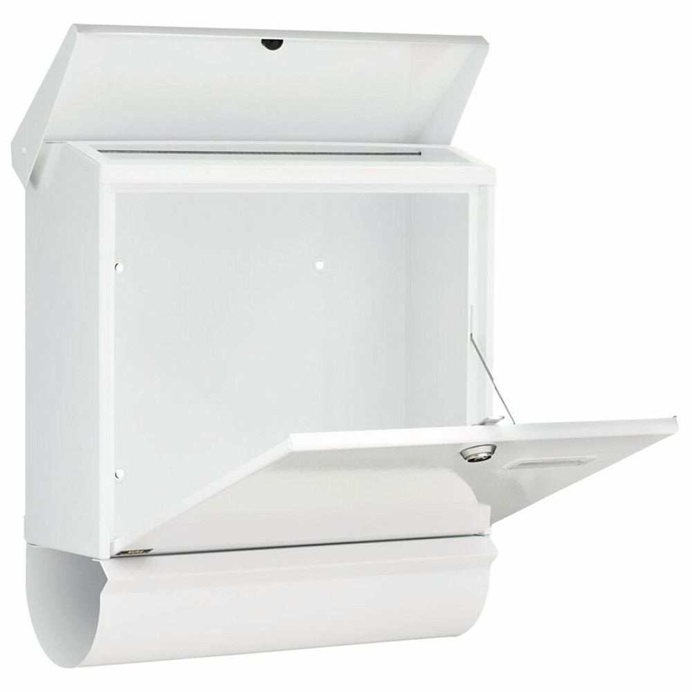 • kapun, kerítésen kívülre szerelhető postaláda• egybeépített, mindkét végén nyitott újságtartóval• anyaga horganyzott acéllemez• műanyag porszórással színezett• UV és időjárásálló lakkozás• elegáns megjelenésű kültéri postaláda• felső bedobónyílás felhajtható tetővel• biztonságos ürítés érdekében nyitáshatárolóval ellátott lefelé nyíló ajtóval• EN 13724 szabványnak megfelelő levélszekrény• nagy befogadóképesség• krómozott 5 csapos postaláda zár• kettő darab kulccsal• műanyag névtartó• rögzítő csavarokkal• nyerskulcs típusa: 65R