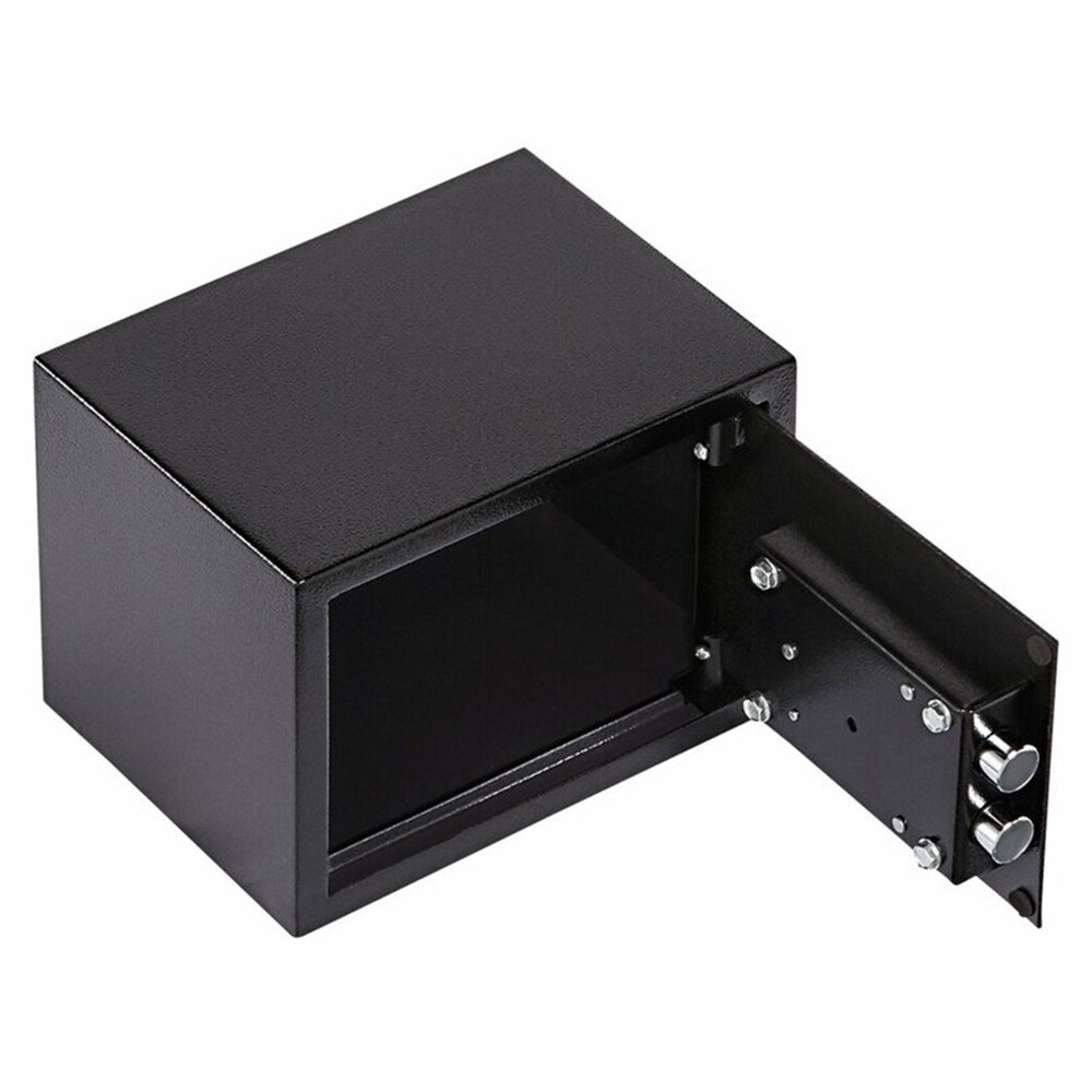- Rögzítés: A két rögzítő furat a hátsó részen lehetővé teszi, hogy a széf stabilan és biztonságosan rögzíthető legyen a kívánt helyen.