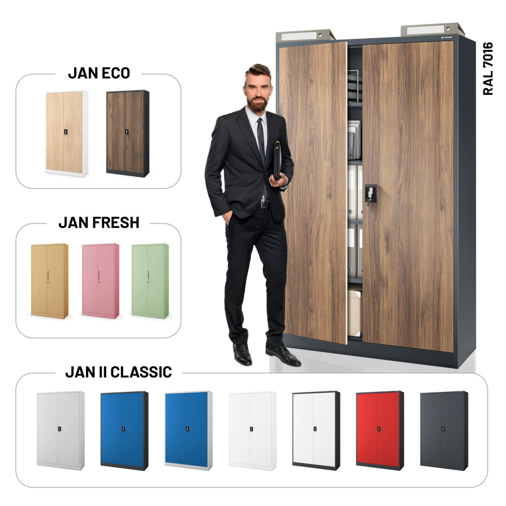 Ez a fém irodai iratszekrény kifejezetten azoknak készült akik irodában rendelőben vagy műhelyben nagy mennyiségű dokumentumot szeretnének rendezett és biztonságos módon tárolni A JAN II iratszekrény akár 60 irattartó befogadására alkalmas kapacitással rendelkezik így jelentősen csökkenti a zsúfoltságot és gyorsabbá teszi a mindennapi munkavégzést