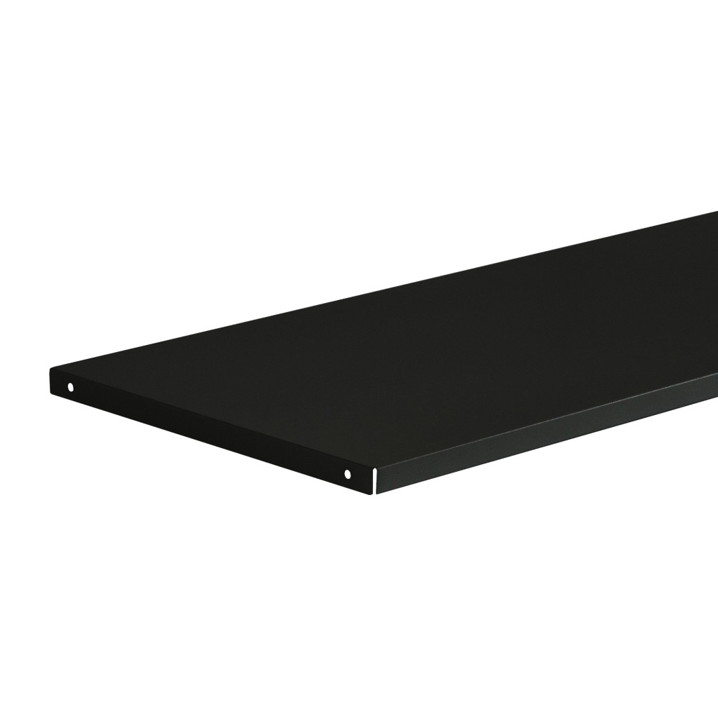 A strapabíró polc 0,6 mm vastag, minőségi acélból készült, amelyet porfestett bevonat véd a karcolásoktól és mechanikai sérülésektől. A fekete szín hosszú ideig megőrzi mélységét és elegáns megjelenését, még intenzív használat mellett is. A masszív szerkezet biztosítja, hogy akár nehezebb tárgyak tárolására is tökéletesen megfeleljen.