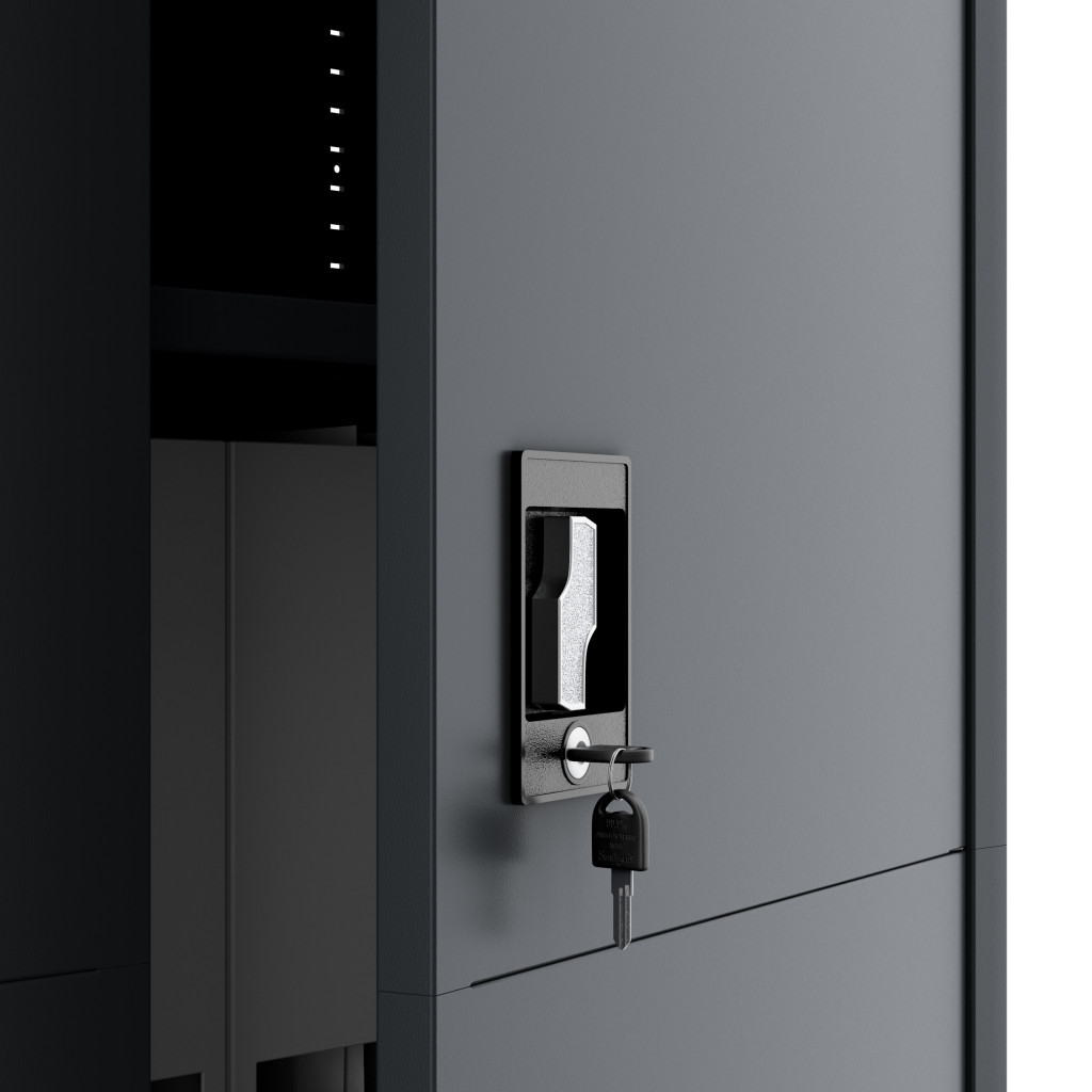 A JAN (185) SMART szekrény a modern irodai igényekre szabva készült. Az antracit RAL7016 szín nemcsak esztétikus, de illeszkedik bármilyen irodai vagy otthoni környezetbe is, professzionális megjelenést biztosítva.