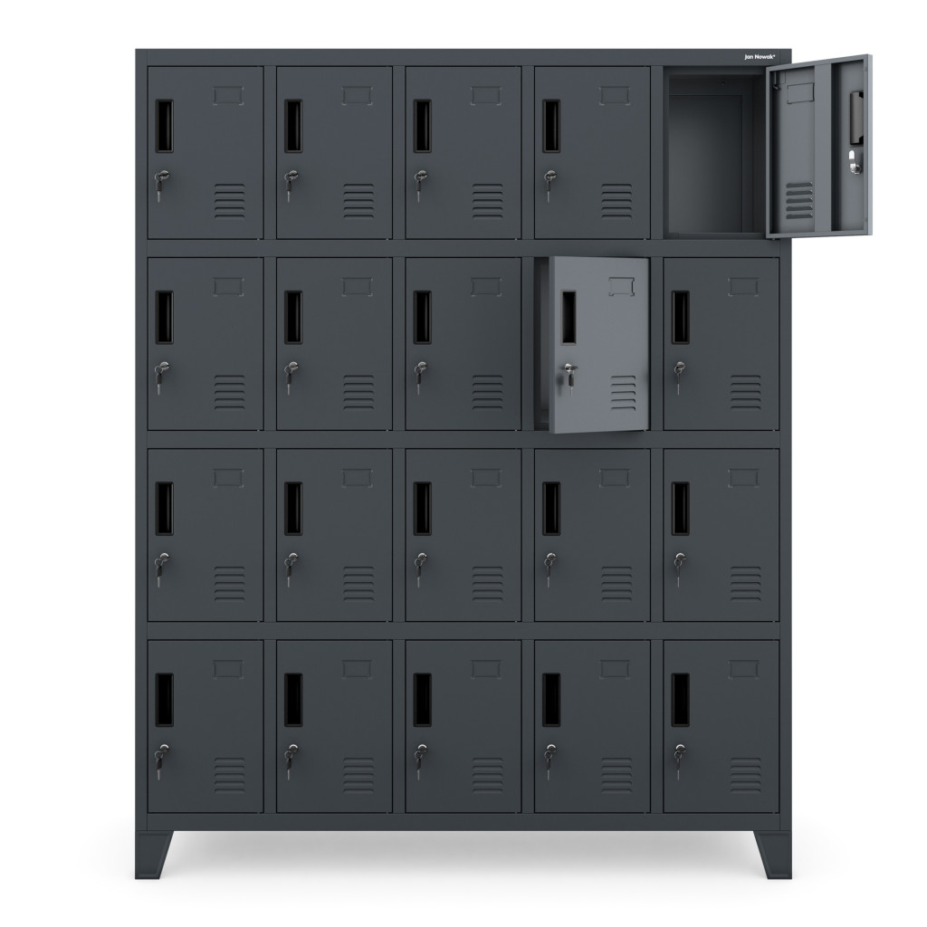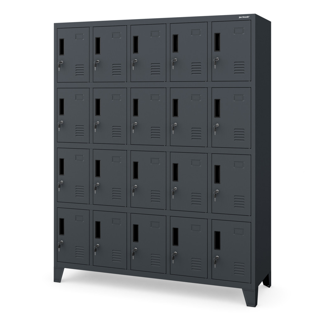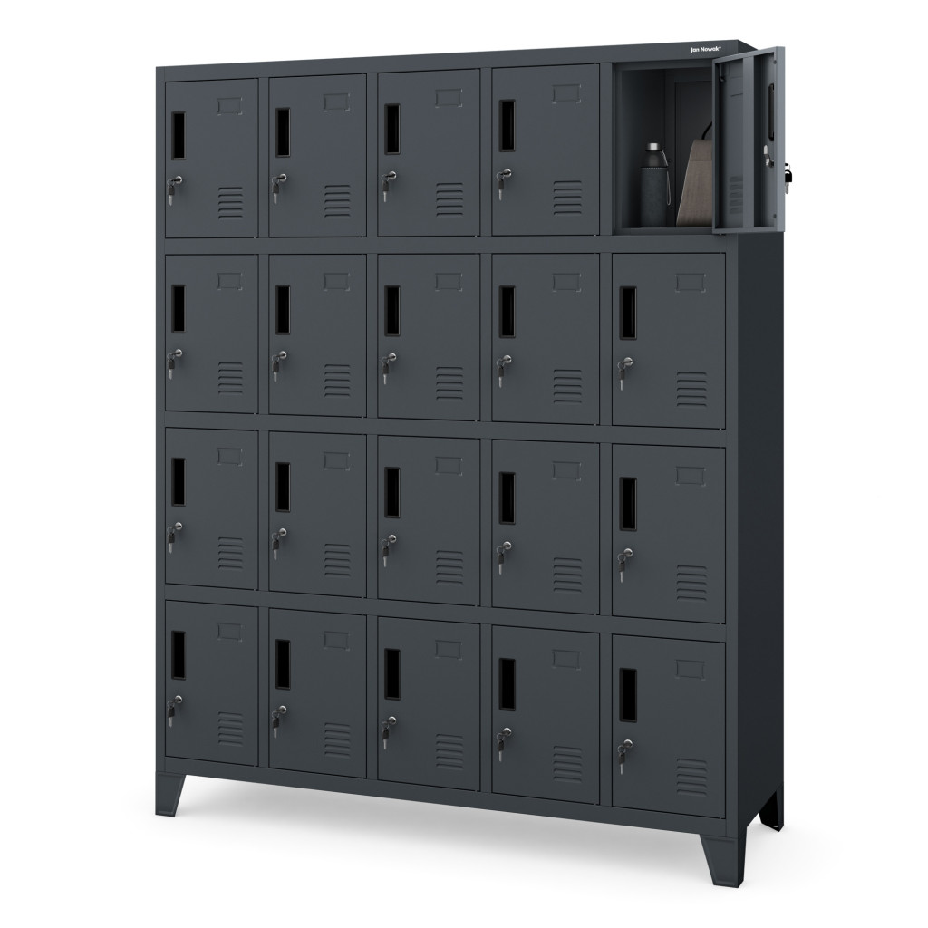 - 20 egyforma méretű rekesz: mindegyik 36 cm magas, 24 cm széles és 45 cm mély, ideális személyes tárgyak, könyvek, sportfelszerelések tárolására.