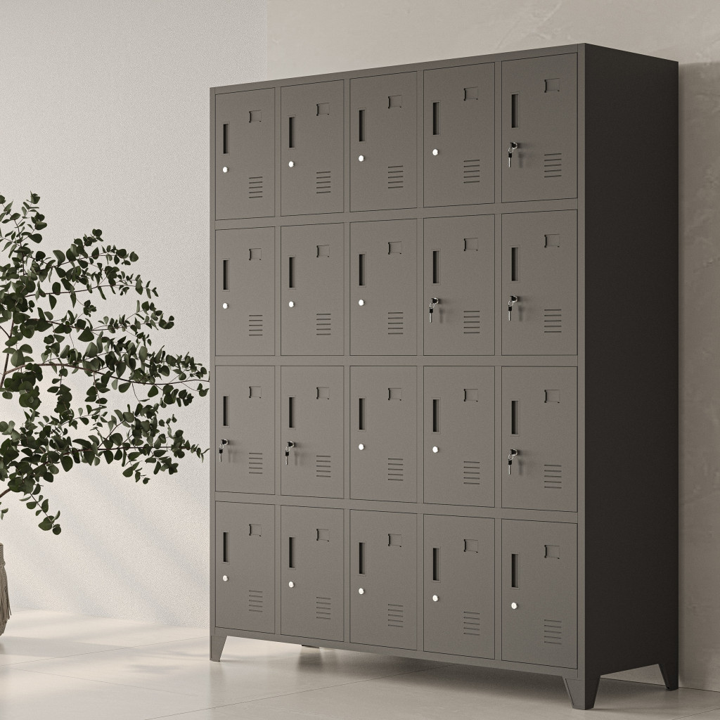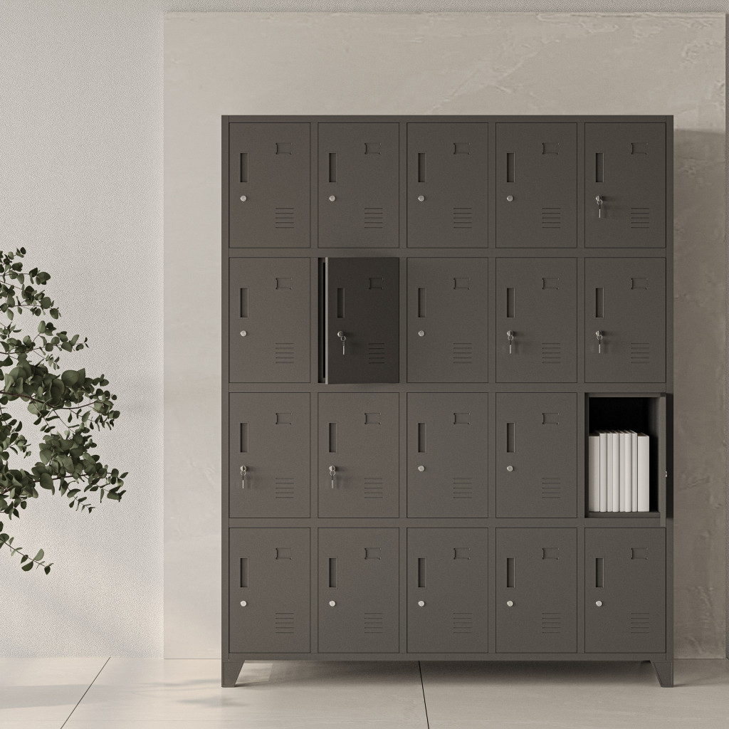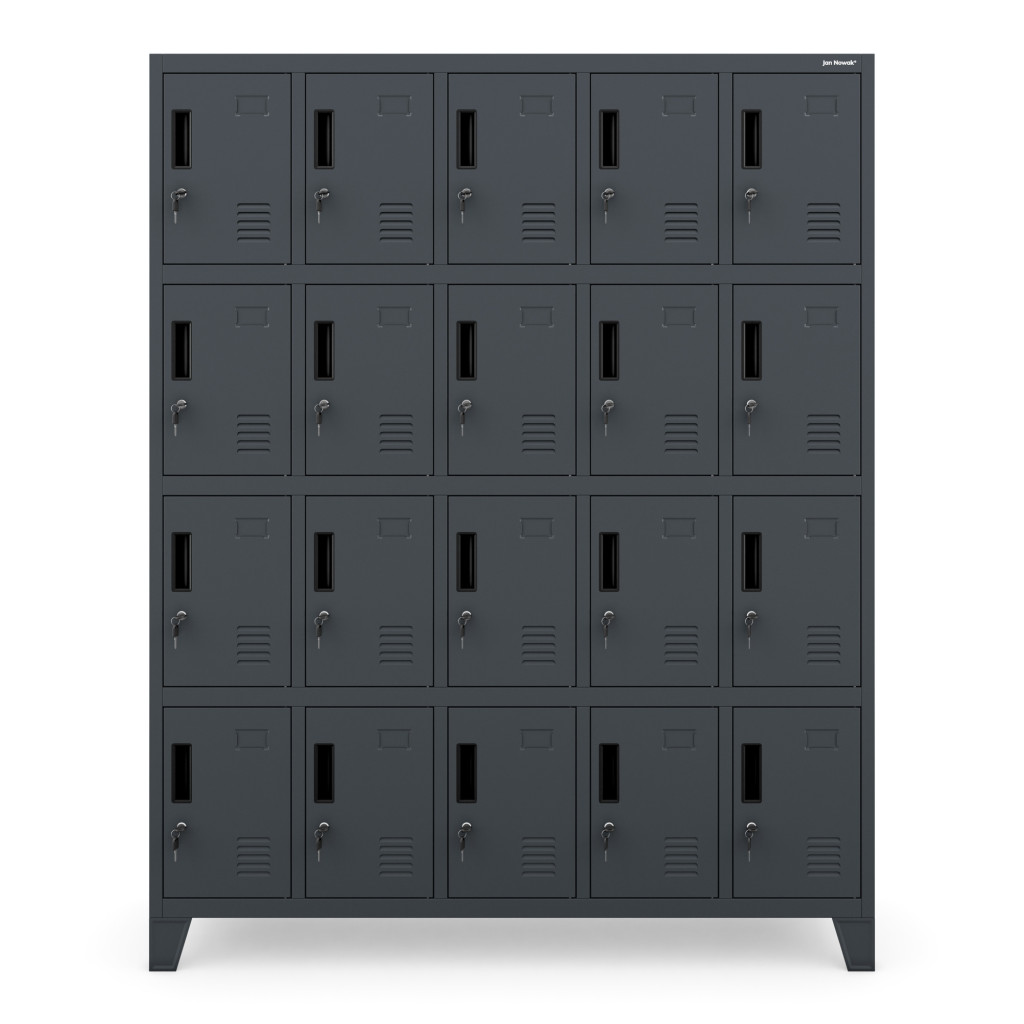 - 20 egyforma méretű rekesz: mindegyik 36 cm magas, 24 cm széles és 45 cm mély, ideális személyes tárgyak, könyvek, sportfelszerelések tárolására.