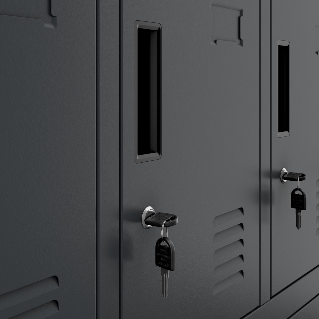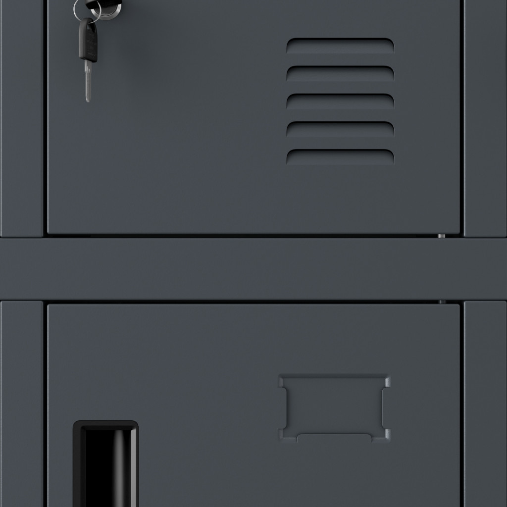 - Biztonság: Az erősített ajtók és az egypontos zárszerkezet a mellékelt két kulccsal mindegyikhez biztosítják a tárolt tárgyak védelmét.
