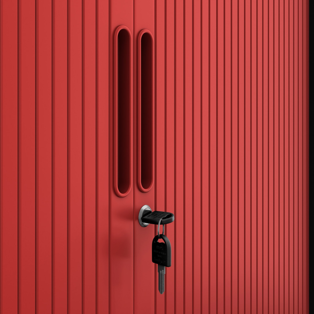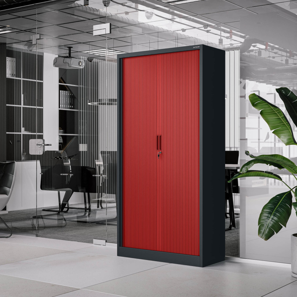DAMIAN | 759 Fém szekrény harmonika ajtókkal / Antracit-piros színben