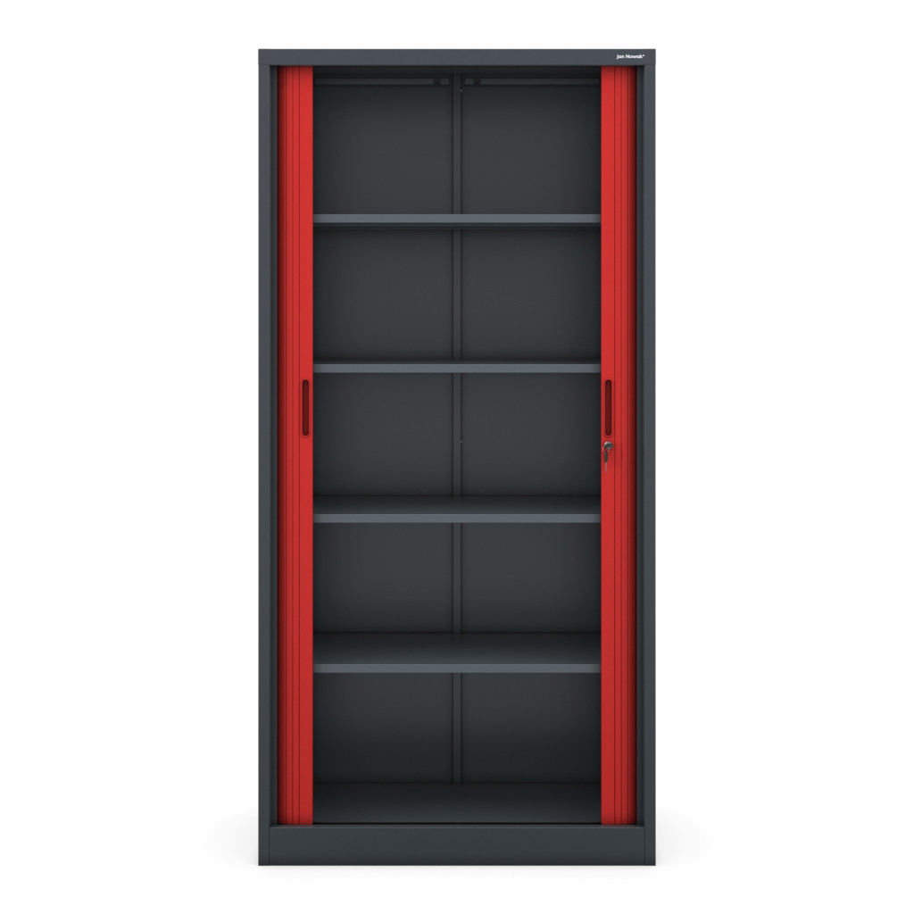 JAN NOWAK Fém szekrény harmonika ajtókkal DAMIAN 900x1850x450, model – antracit-piros
