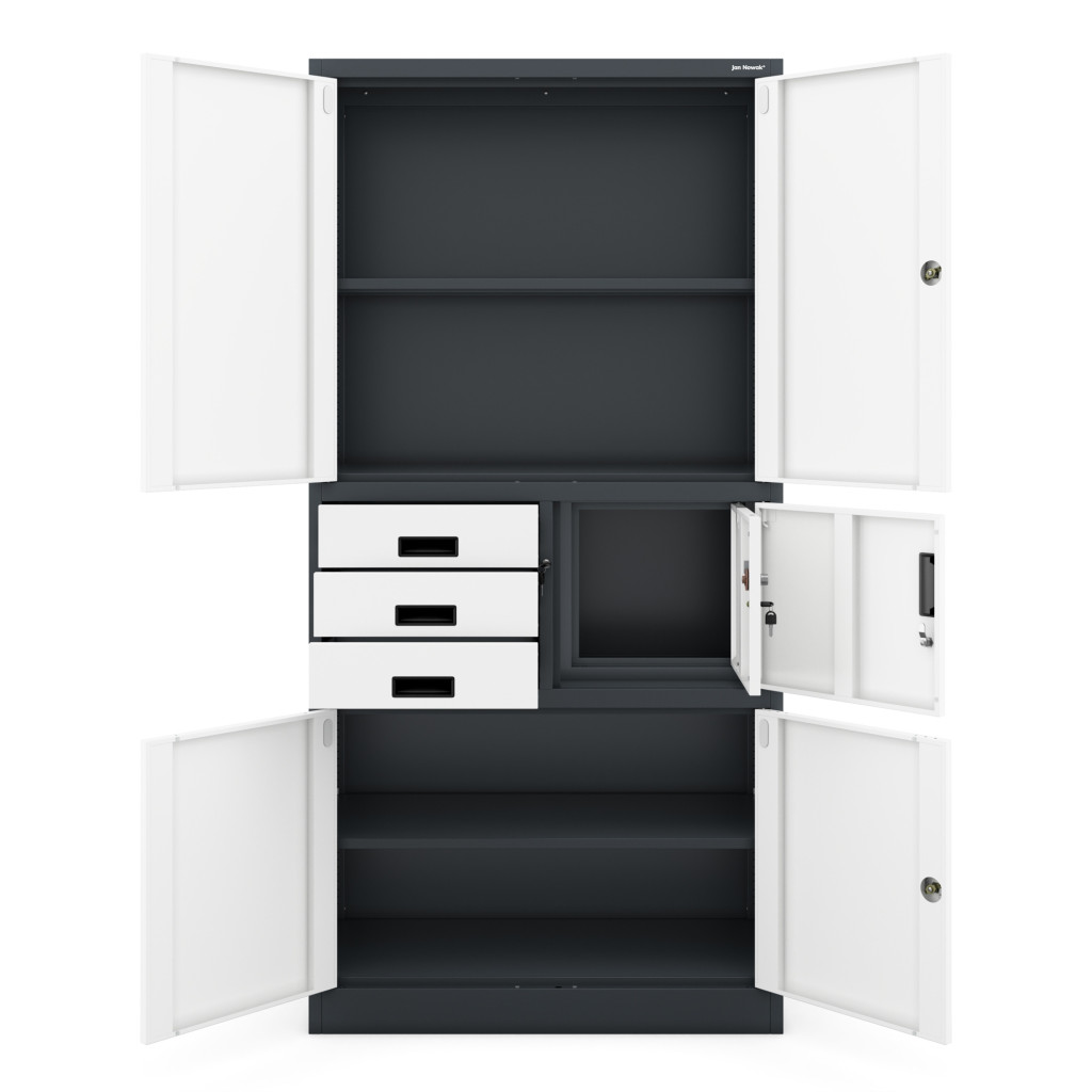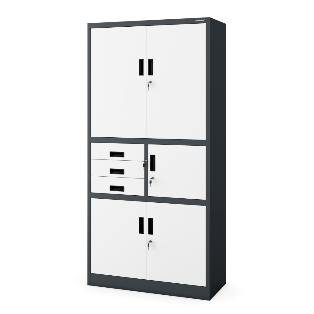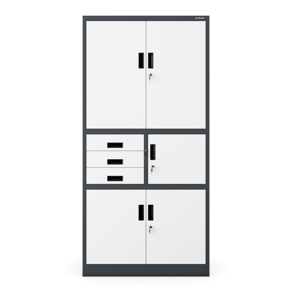 JAN NOWAK Fém iratszekrény széffel és fiókokkal FILIP II 900x1850x400, modell antracit-fehér
