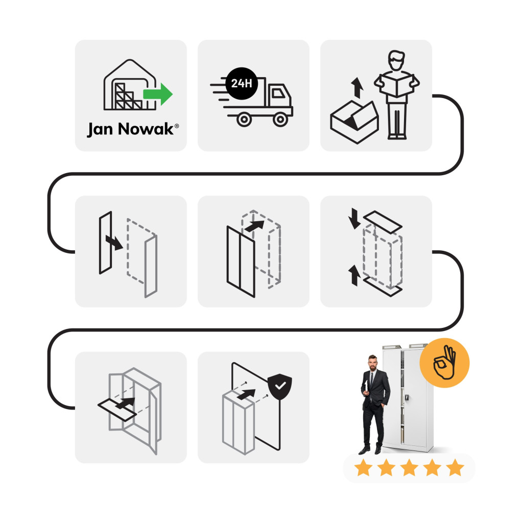 A szekrényt szétszerelt állapotban szállítjuk, ezért önálló összeszerelést igényel.