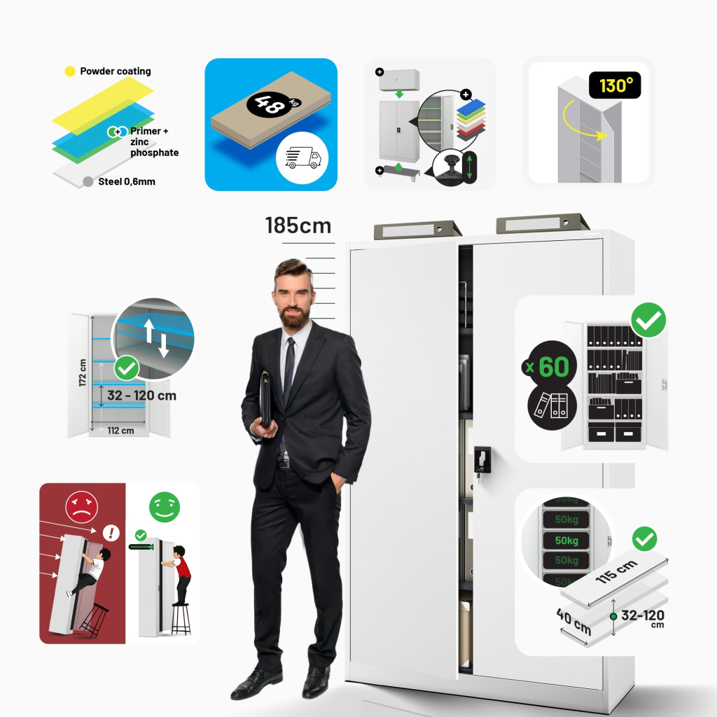 • Összhangban a 2018-as GDPR rendelettel – fontos iratait tárolja egy olyan szekrényben, amely megfelel ezeknek az előírásoknak