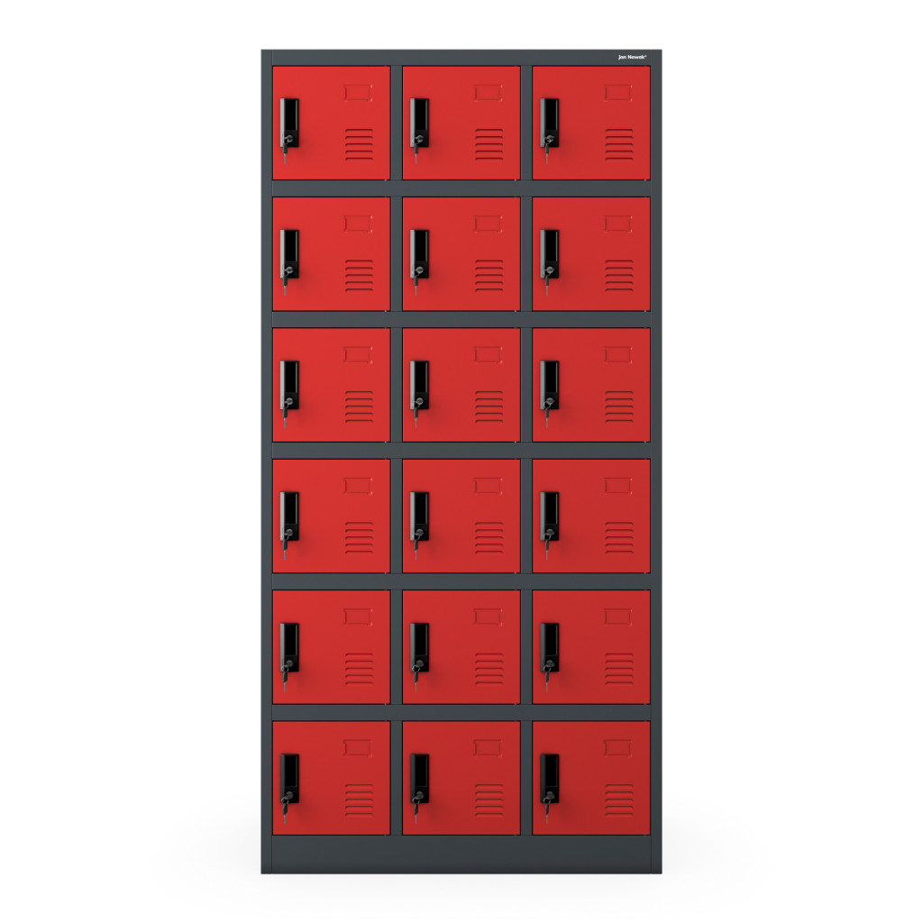 JAN NOWAK KAROL 18 rekeszes öltözőszekrény talapzattal 900x1850x400, antracit-piros