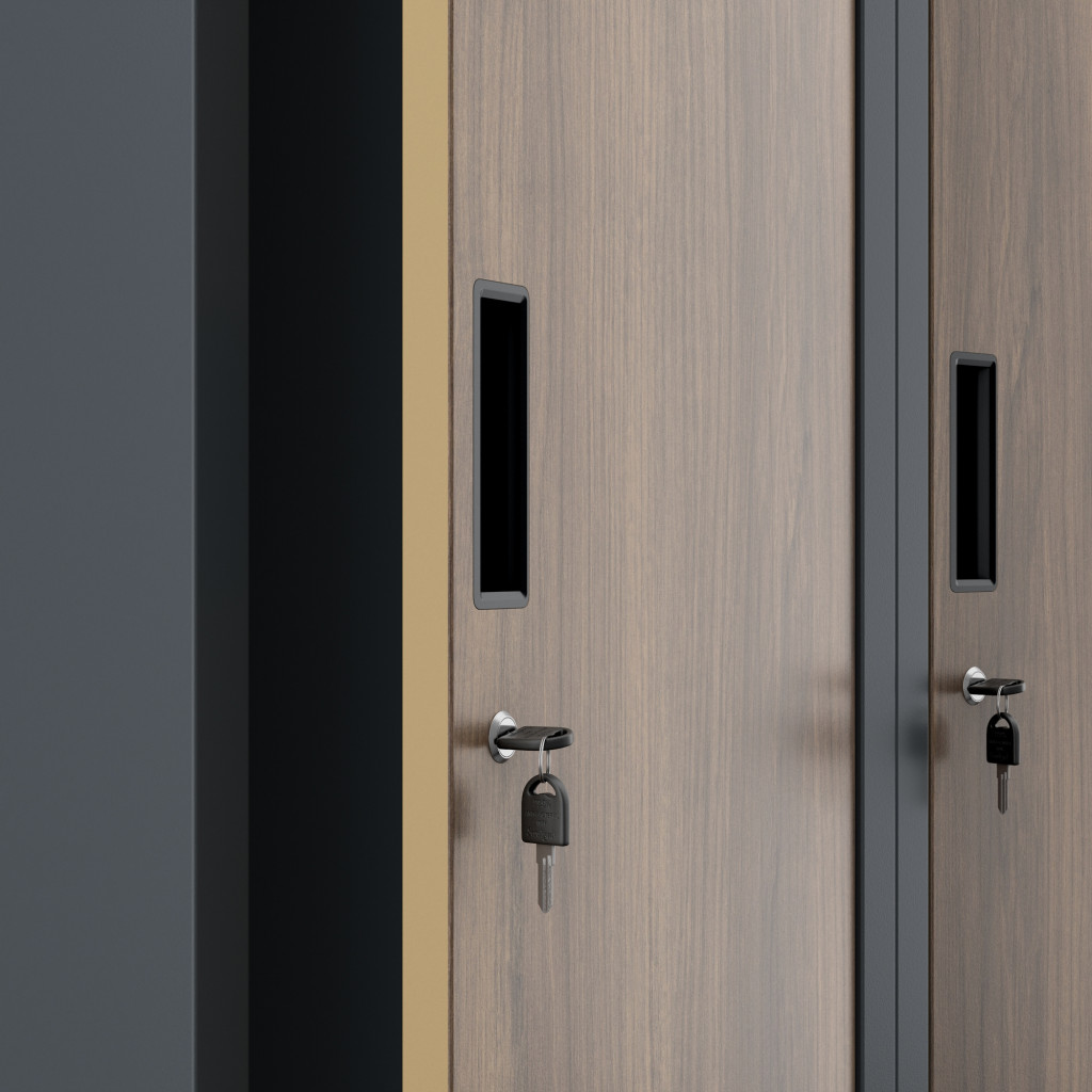 A 2 modulban elhelyezkedő 4 tároló hely biztonságos tárolást nyújt, mindegyik ajtó megbízható, minőségi zárral rendelkezik, amelyhez két kulcs tartozik a készletben.