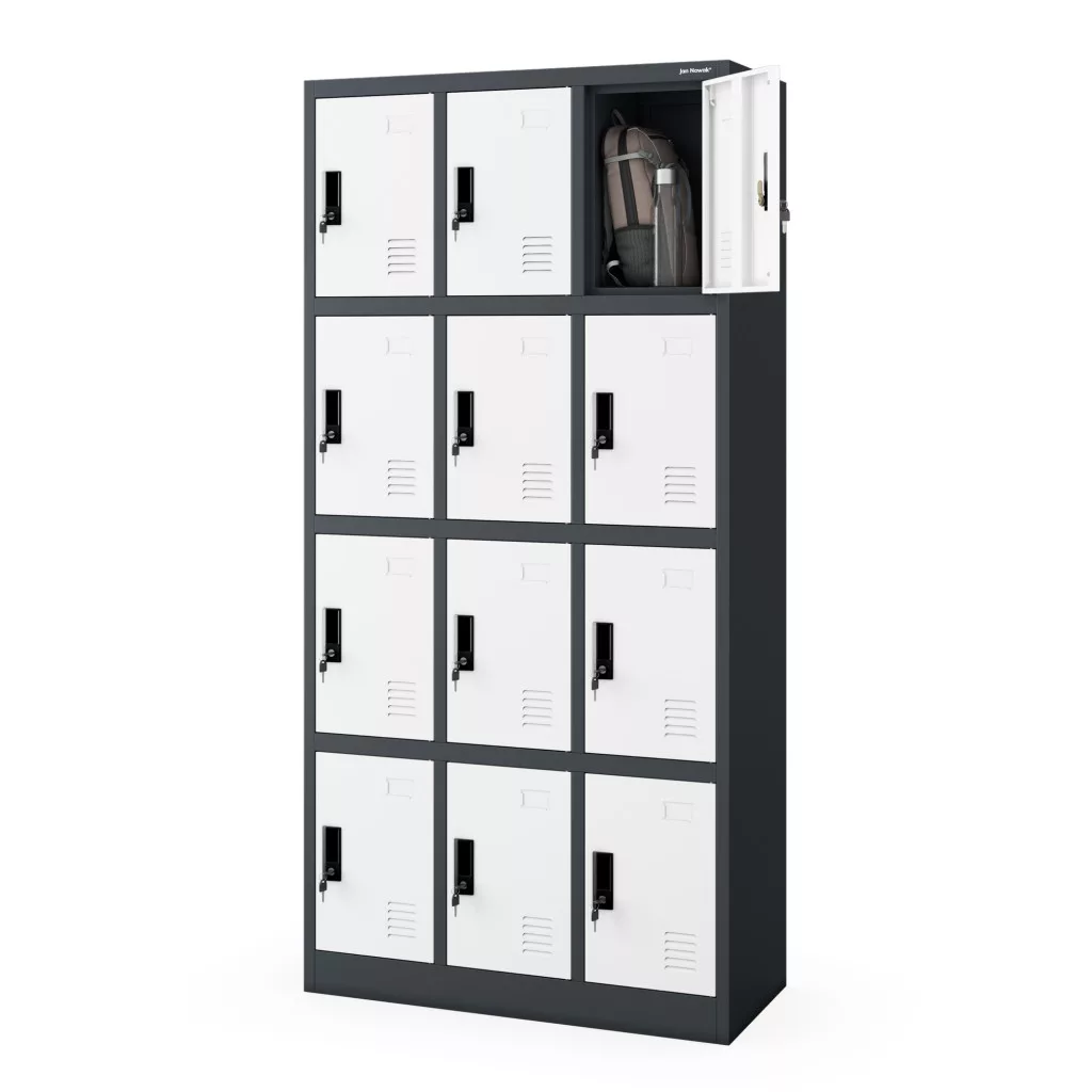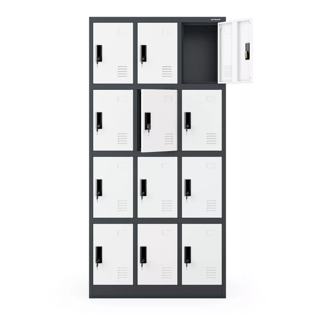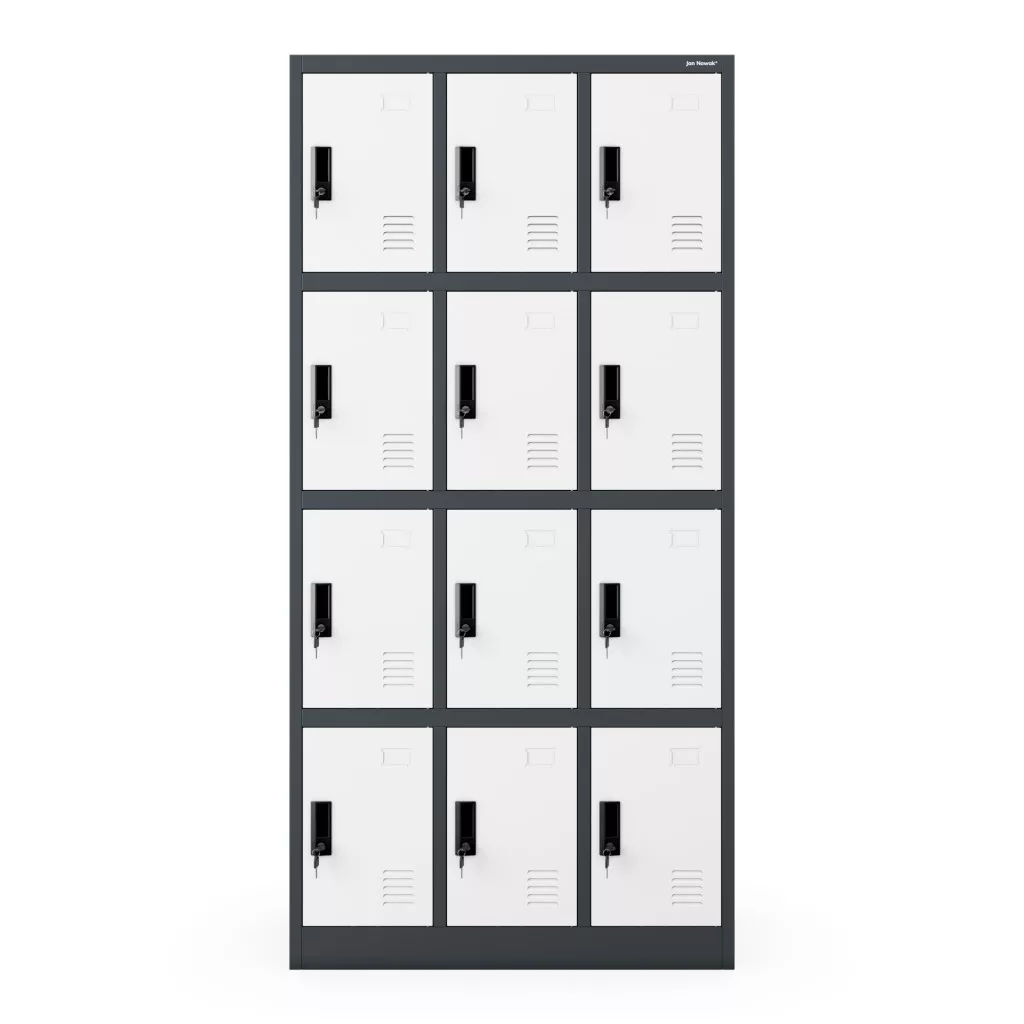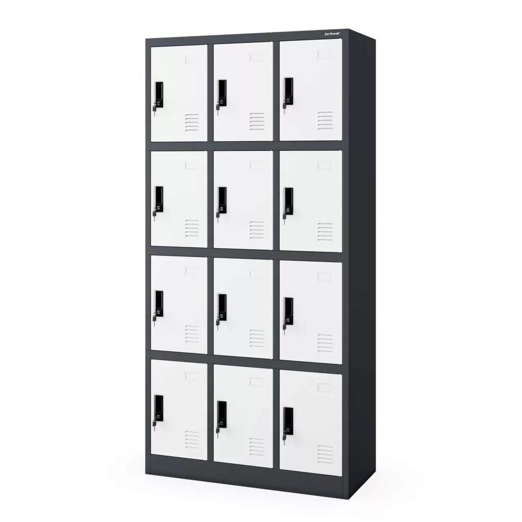 Értékmegőrző termékünlet első sorban sportegyesületek, iskolák, munkahelyek, gyárak, korházak számára ajánljuk. Értékmegőrzőnk 12 rekeszes szelekciója, lehetővé teszi a kényelmes tárolást, összehajtott ruhaneműk, táskák, cipők részére. Az értékmegörző. A design szellőzőnyílások segítségével a benne tárolt tárgyak szellőzése kiválóan biztosított.  A porszórással kezelt felület lehetővé teszi, hogy a használt tisztítószerek ellen védelmet nyújtson ez által tisztítása egyszerű és gyors. JAN NOWAK® Értékmegőrző szekrény kicsit más, mint a már megszokott unalmas színvilággal piacon lévő szekrények. A terméket megrendelheted lapraszerelve (szereld magad) csomagban. Vagy kérheted összeszerelve a házhozszállítva.