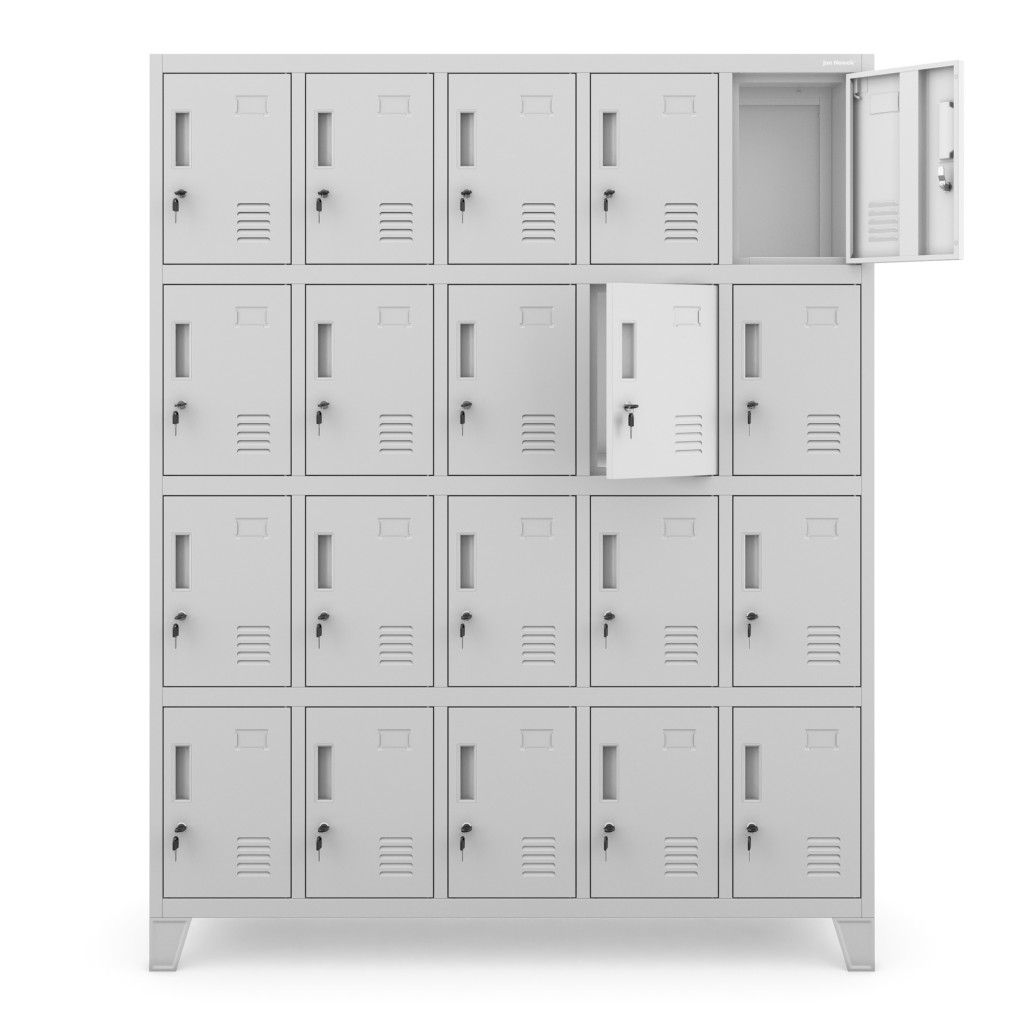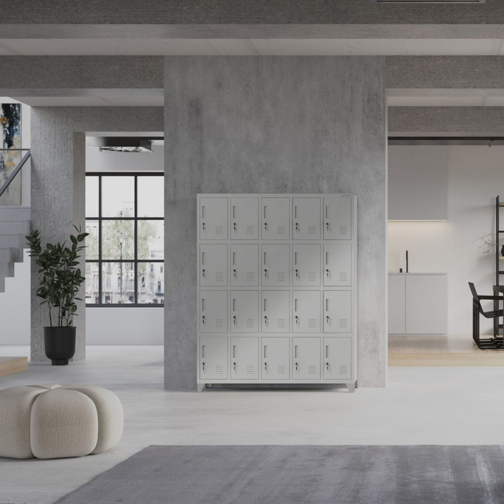 • 20 egyforma méretű rekesz: mindegyik 36 cm magas, 24 cm széles és 45 cm mély, ideális személyes tárgyak, könyvek, sportfelszerelések tárolására.