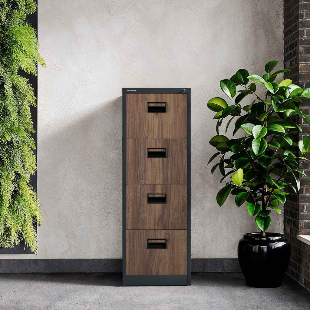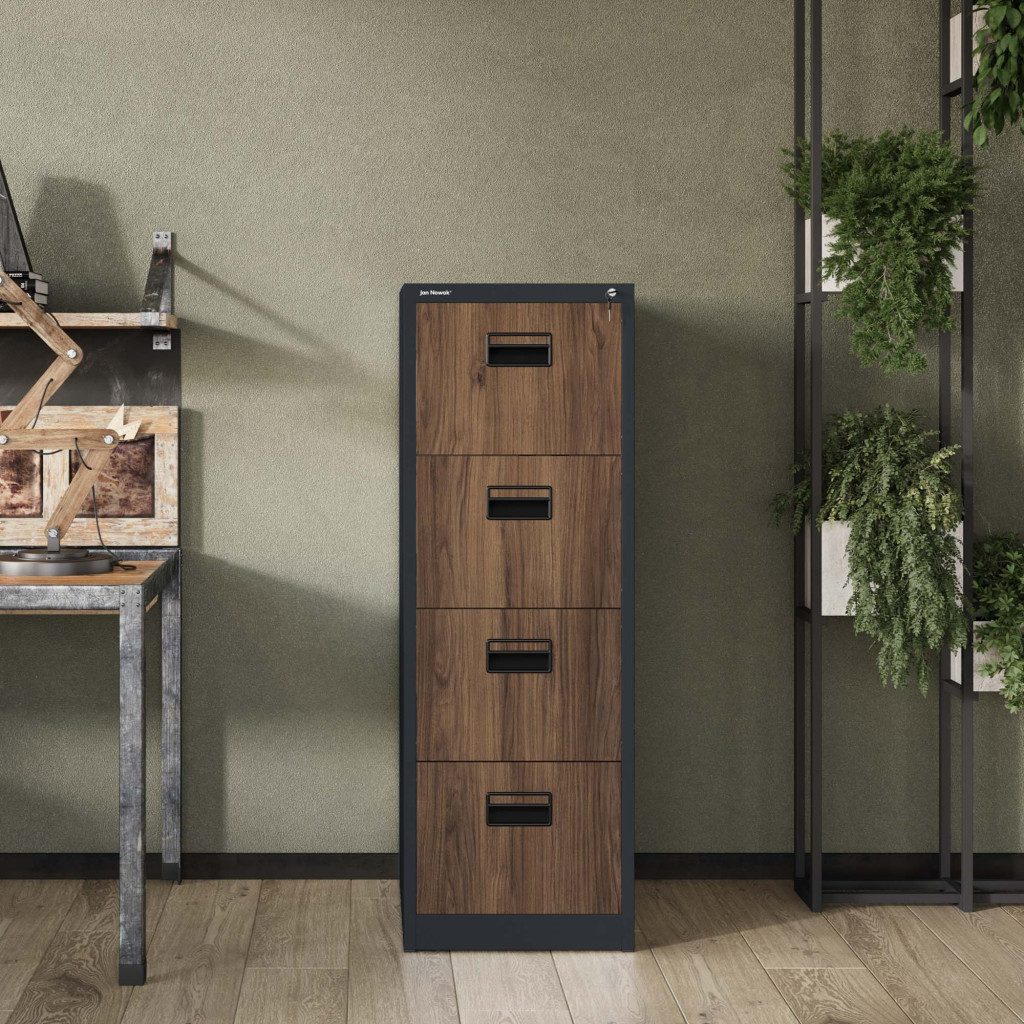 JAN NOWAK Fém irattartó szekrény loft stílus SARA 460x1320x620, modell antracit-dió, 4 fiókos