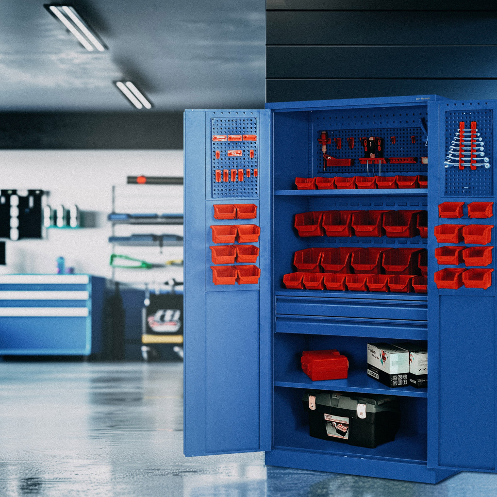 SZYMON | 1042 Fém műhelyszekrény fiókokkal / Kék színben