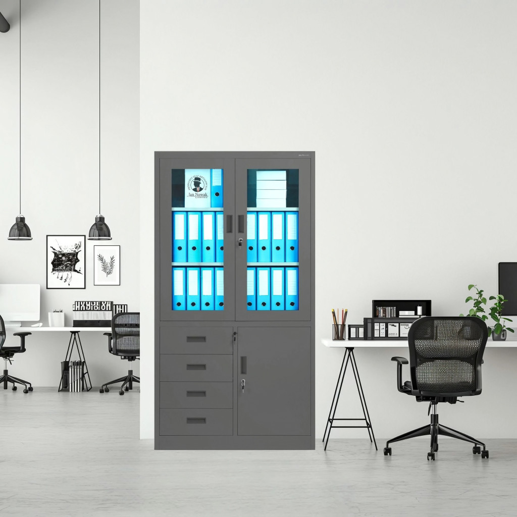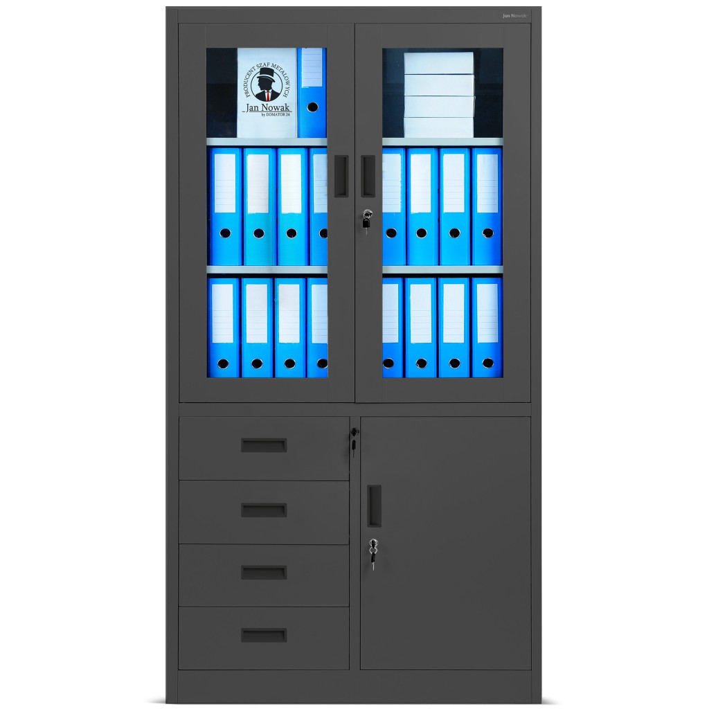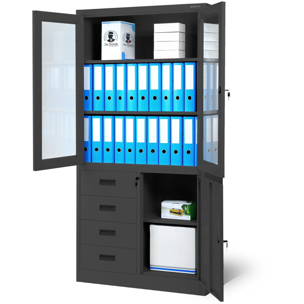 • vitrin üvegezett ajtókkal - kényelmesen átláthatja dokumentumait, mappáit, stb...