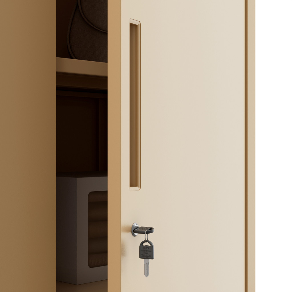 A szekrény a JAN NOWAK márka Fresh Style kollekciójának része, amely a fémbútorok új, látványos irányát képviseli. A különleges bézs szín (RAL 1001) nemcsak modern, de meleg és barátságos hangulatot is teremt akár egy irodában, dolgozószobában vagy előszobában. A modell megmutatja, hogy a fémszekrények is lehetnek stílusos bútordarabok.