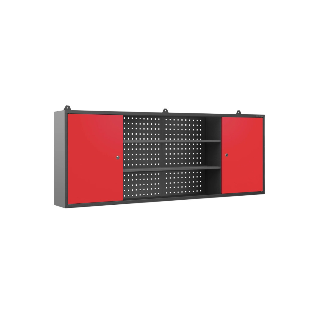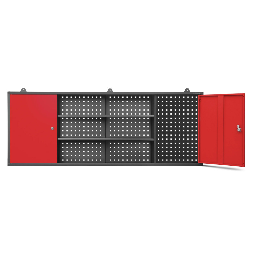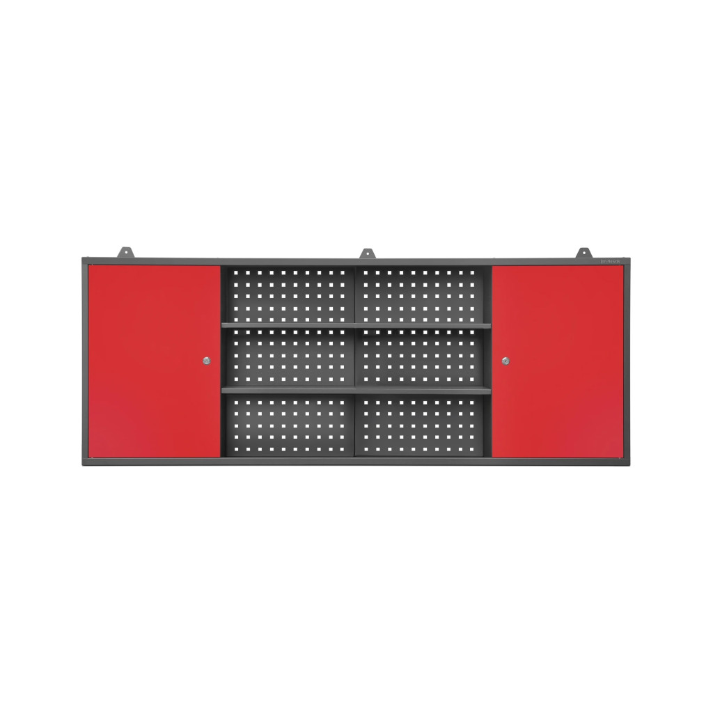 Az antracit-piros színkombináció nem csak esztétikus, de ellenálló is, így hosszú távon megőrzi eredeti megjelenését. A masszív kialakítás biztosítja, hogy a szekrény bírja a mindennapos igénybevételt, és professzionális megjelenést kölcsönöz műhelyének.
