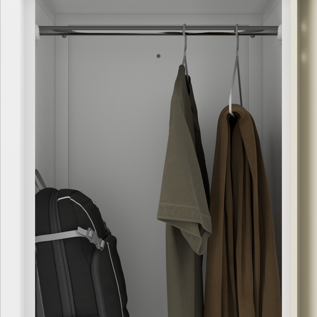 A szekrény 1850 mm-es magassága, 800 mm-es szélessége és 450 mm-es mélysége elegendő helyet biztosít a ruhák, cipők és egyéb kiegészítők tárolására. Belső elrendezése lehetővé teszi a rendszerezett tárolást, miközben könnyen hozzáférhetővé teszi a mindennap használatos tárgyakat.