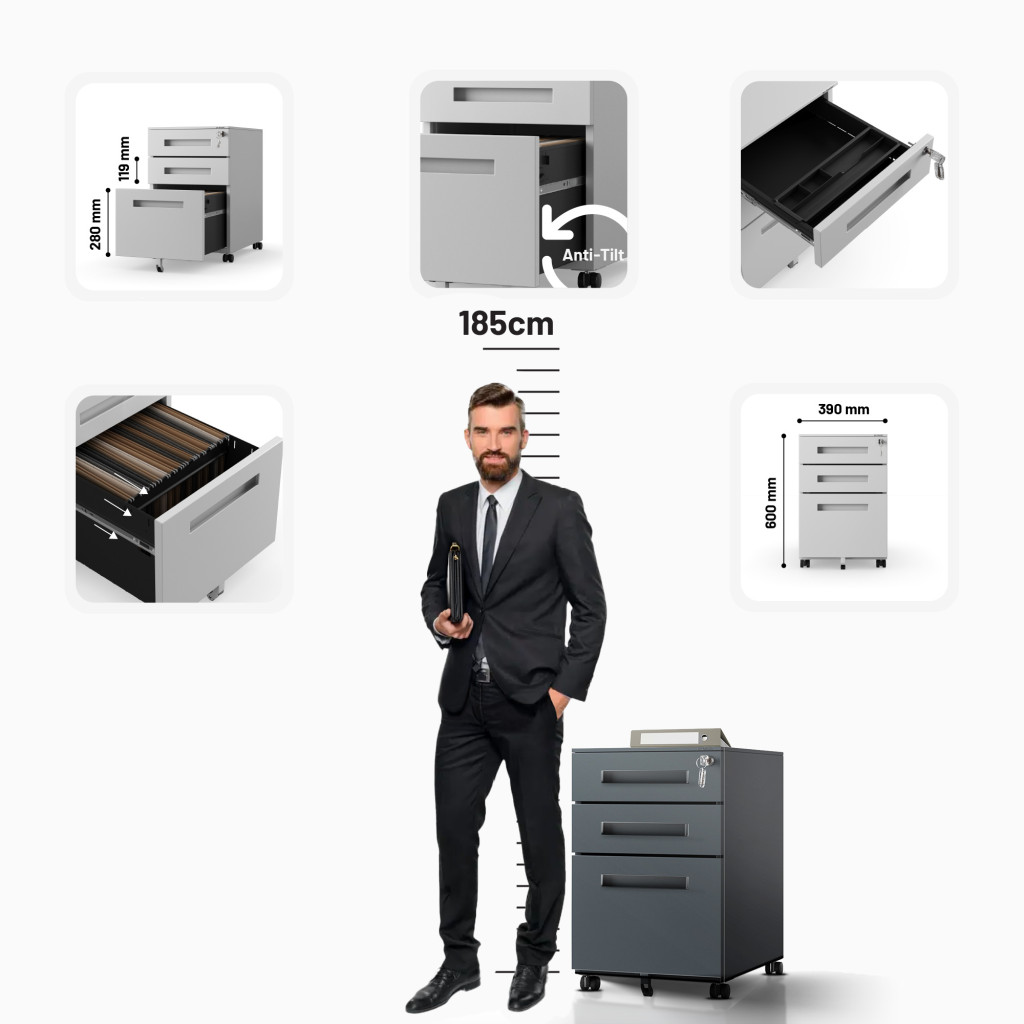 KATE Kontenerek pod biurko antracytowy | Pedestal cabinet anthracite | Schreibtisch Unterschrank Anthrazit