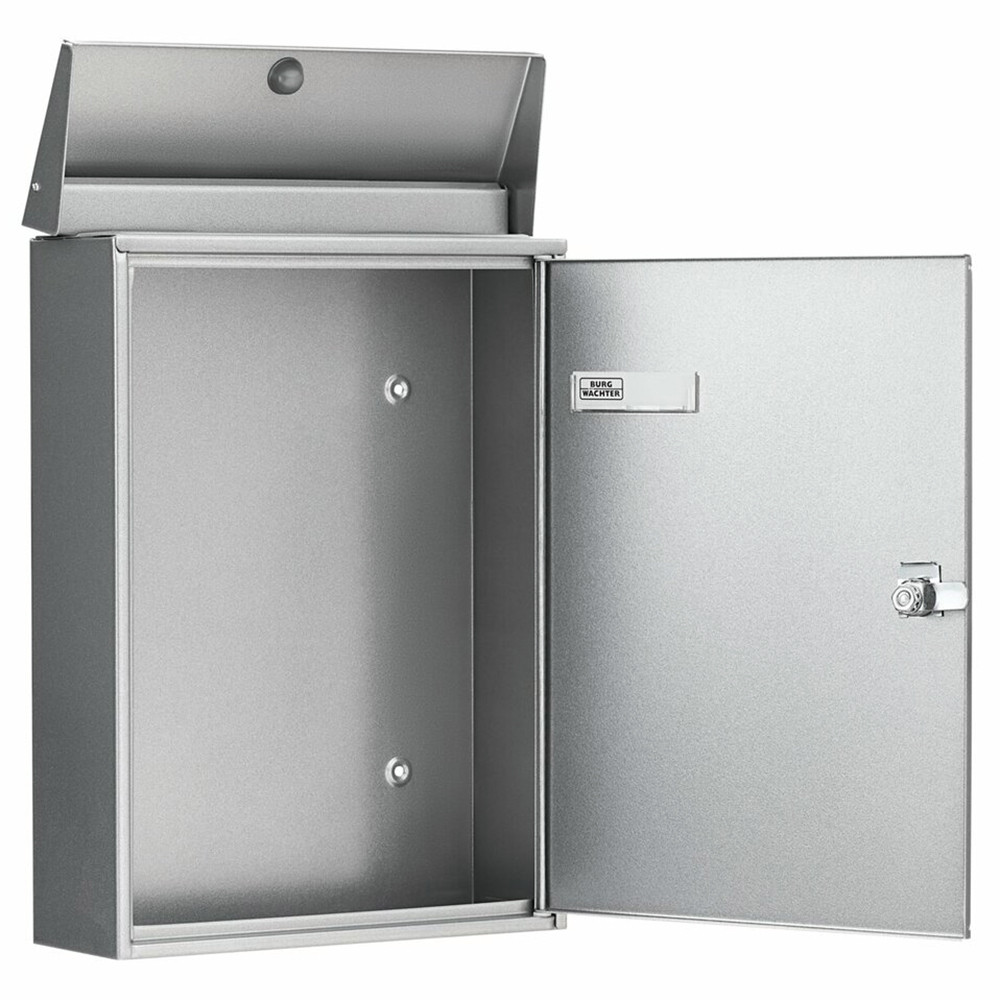 •kapun, kerítésen kívülre szerelhető postaláda•anyaga horganyzott acéllemez•műanyag porszórással színezett•időjárásálló lakkozás•hagyományos megjelenésű kültéri levélszekrény•felső bedobónyílás felhajtható tetővel•oldalra nyíló ajtó névtartóval•krómozott postaláda zár•kettő darab kulccsal•többféle színben