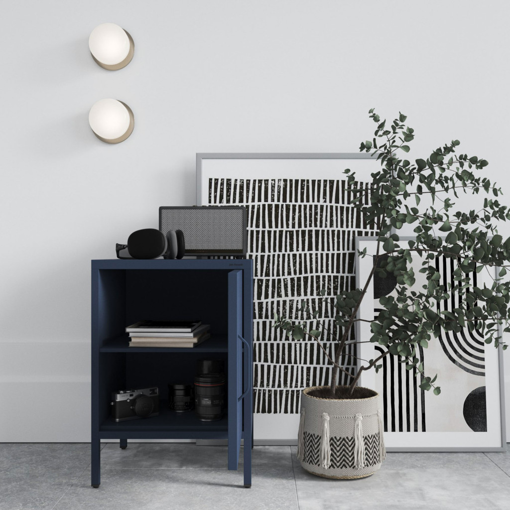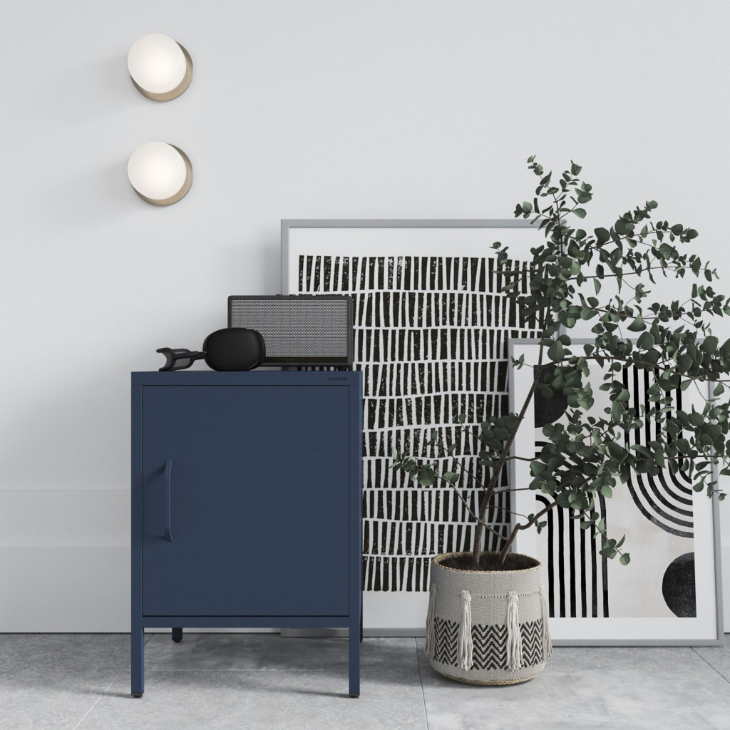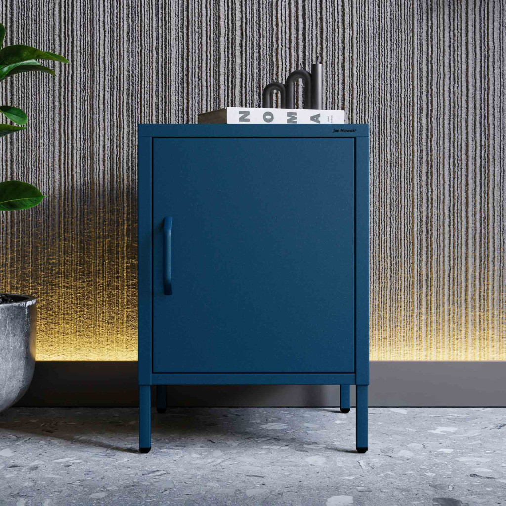 A sötétkék szín és a letisztult forma lehetővé teszi, hogy a MIA C19A éjjeliszekrény könnyedén illeszkedjen különféle stílusú berendezésekhez. Legyen az klasszikus vagy modern, ez az éjjeliszekrény minden esetben megállja a helyét.