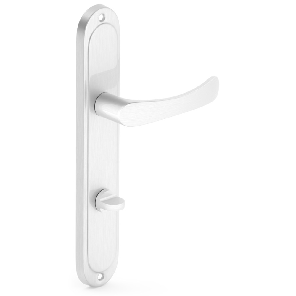 •hosszúcímes alumínium ajtókilincs•WC záras beltéri ajtókhoz•klasszikus megjelenés•mindkét oldalon rugós mechanizmussal•kilincs lenyomás után visszaáll vízszintes helyzetbe•105 mm hosszú, 8 x 8 mm-es kilincs tengely•80 mm hosszú (méretre vágható) rögzítő csavar•felszereléshez szükséges anyagokkal•többféle méretben és színben áruljuk•kilincstengely és kulcslyuk közötti távolság: 72 mm•kilincs címke magasság: 238 mm•kilincs címke szélesség: 40 mm•kilincs hossz: 110 mm