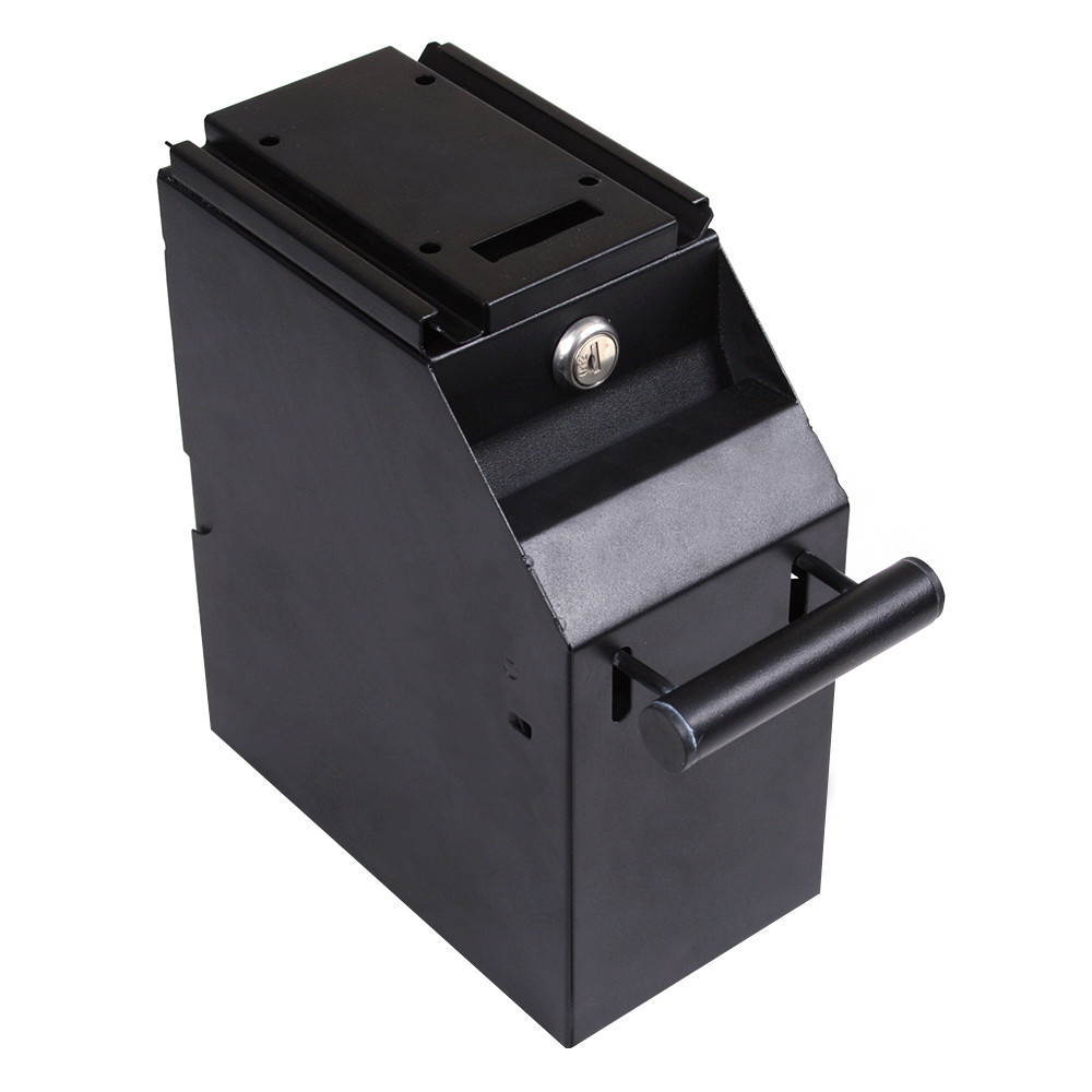 • kiváló minőségű pénzcsapda• masszív acéllemez ház• tartósín segítségével asztal vagy pult alá rögzíthető (és lezárható)• helyezze a bankjegyet (egyszerre akár többet is) a csapdába, majd nyomja le a kart• bankjegyek a lezárt belső rekeszbe kerülnek• rablás esetén megóvja a behelyezett pénzt• bankjegyek kivételéhez nyissa ki a hátsó zárat és húzza ki a belső rekeszt• pénzt éjszakára tartsa biztonságos helyen (pl. páncélszekrényben)• fekete színben kapható