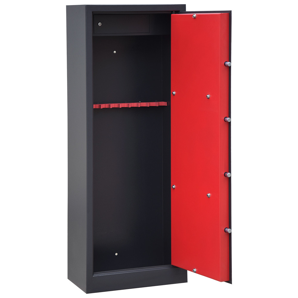 A Technomax - TCH 10 fegyverszekrény a magas szintű biztonság és megbízhatóság szinonimája a fegyvertárolás területén. Kifejezetten azok számára tervezték, akik fontosnak tartják fegyvereik és lőszereik szigorúan szabályozott, biztonságos tárolását.