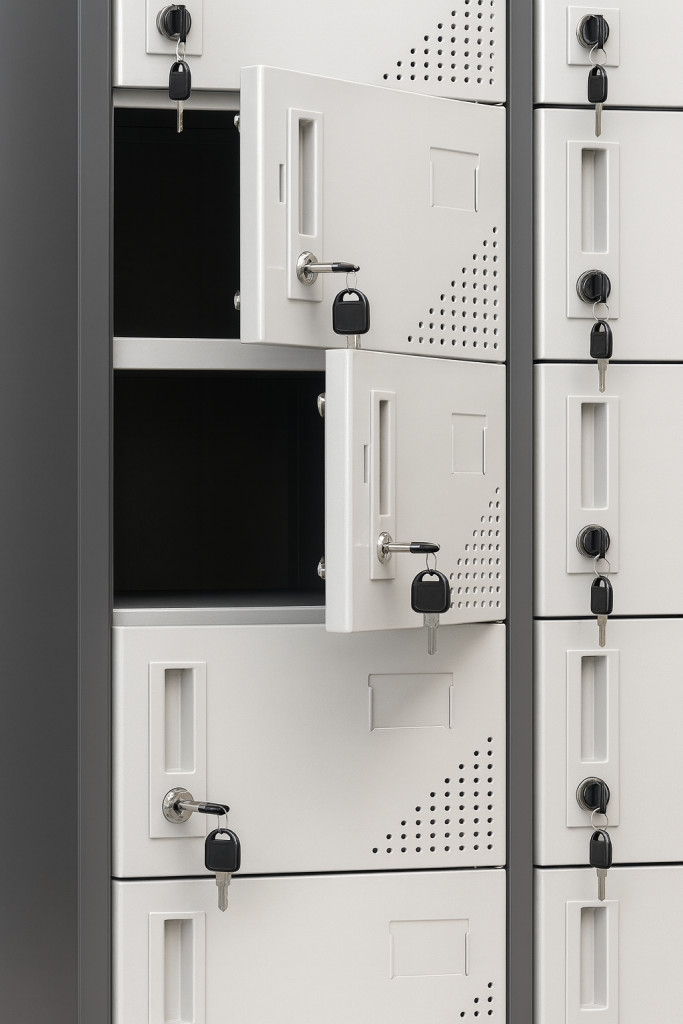 Minden rekesz kulcsos zárral zárható, és ajtónként két kulcs tartozik a termékhez. A zárak egymástól függetlenül működnek, így a rekeszek használata egyéni hozzáférés mellett biztonságosan megoldható.