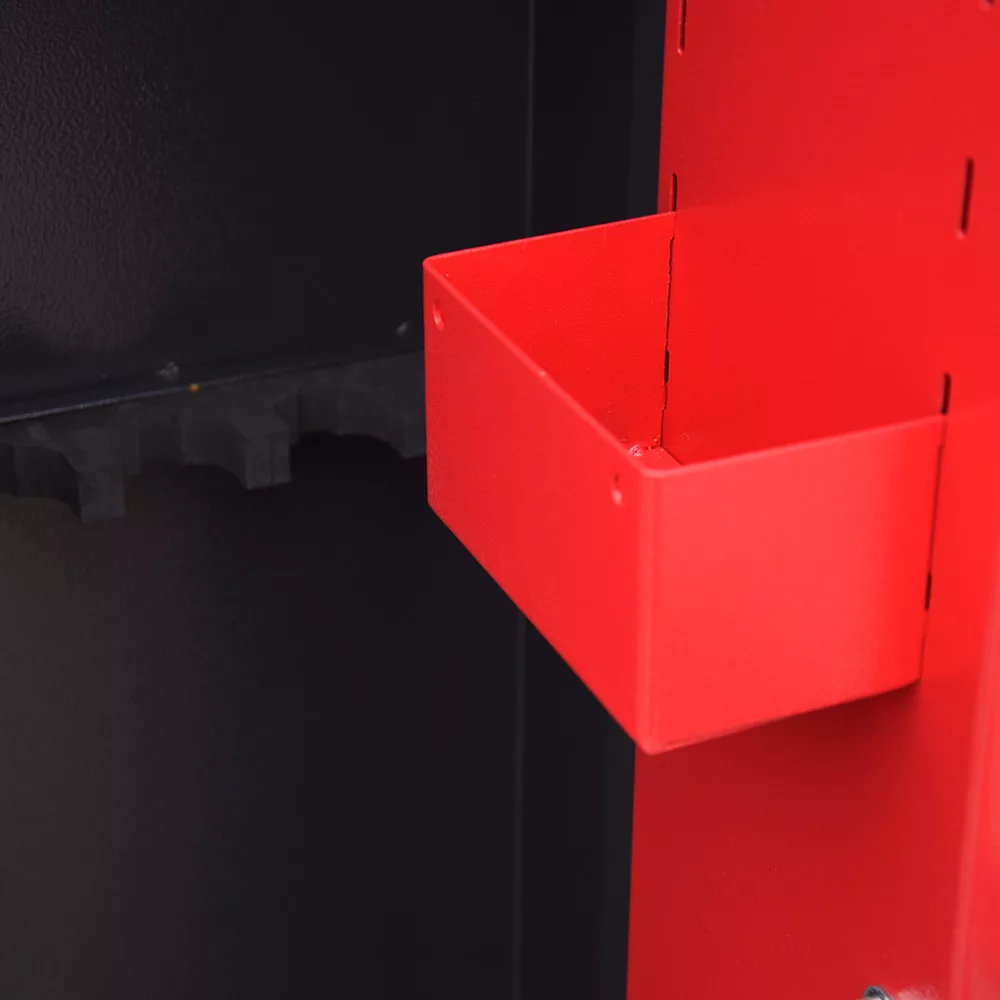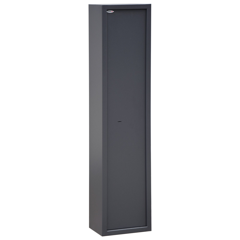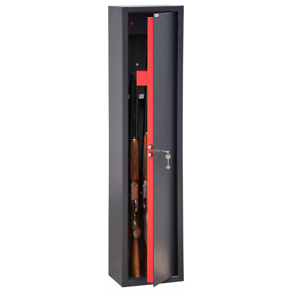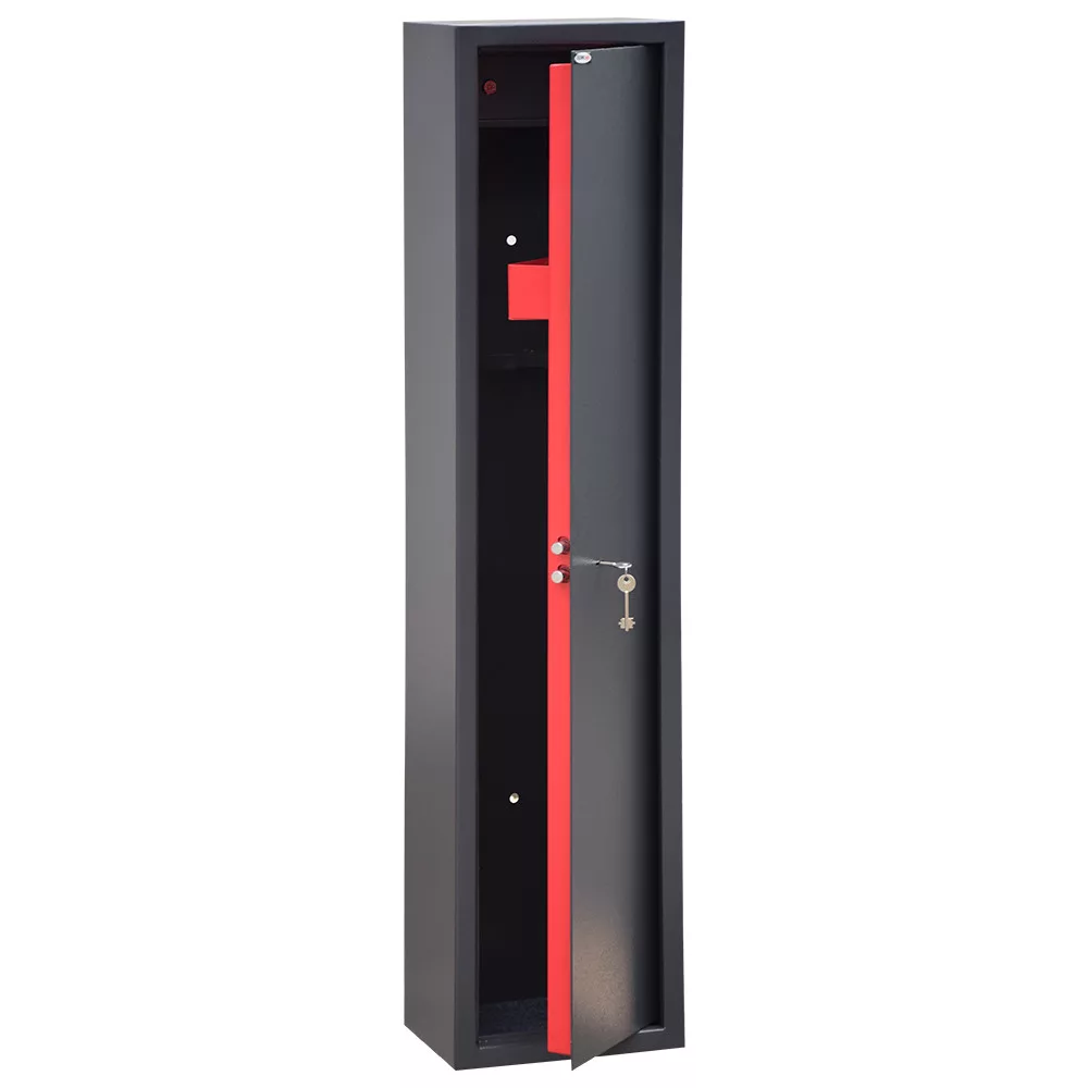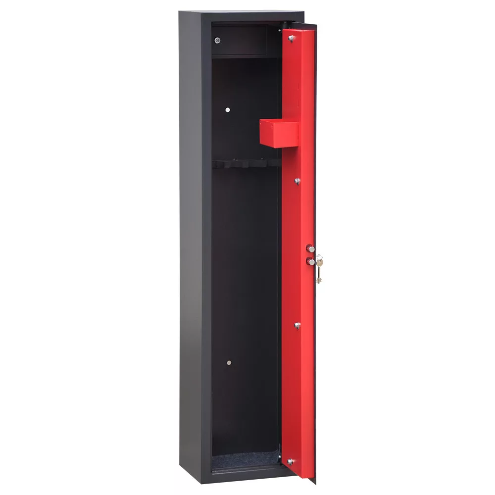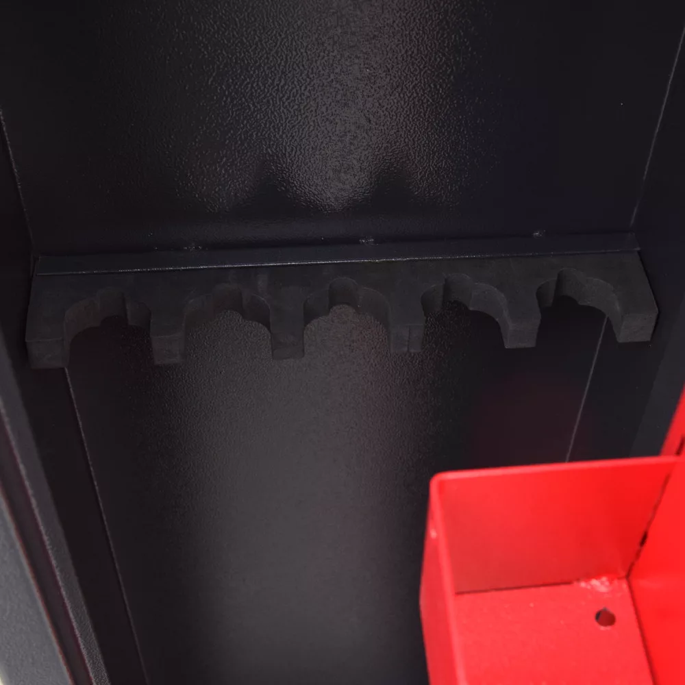 A szekrény fegyvertartói lehetőséget biztosítanak 5 vagy 10 db fegyver biztonságos tárolására, így a szekrényt különböző méretű és típusú fegyvergyűjteményekhez is igazíthatjuk. A rögzítő furatok mind a szekrény alján, mind a hátoldalán megtalálhatóak, lehetővé téve ezzel a szekrény biztonságos rögzítését a padlóhoz vagy a falhoz, megakadályozva ezzel az elmozdulását vagy az esetleges eltulajdonítását.