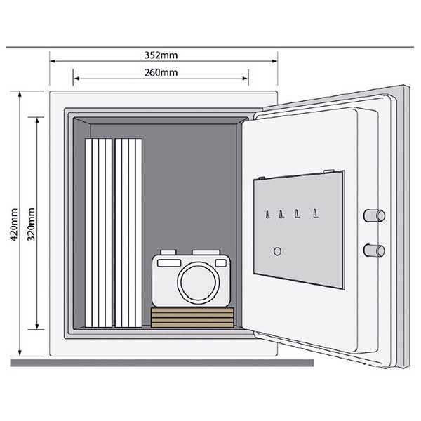 Ez egy duplafalú tűzálló széf digitális számzárral, ami 60 perces tűzállóságot garantál a dokumentumok számára. A széfet 927°C-on tesztelték, és 1 óra elteltével a belső hőmérséklet nem haladta meg a 150°C-ot. A 180 fokos ajtónyitás jobboldali külső zsanérokkal történik, és magas biztonságú elektronikus számkombinációs zárral rendelkezik. Az exkluzív, érintéskor világító érintő billentyűzet pedig még könnyebbé teszi a használatot.