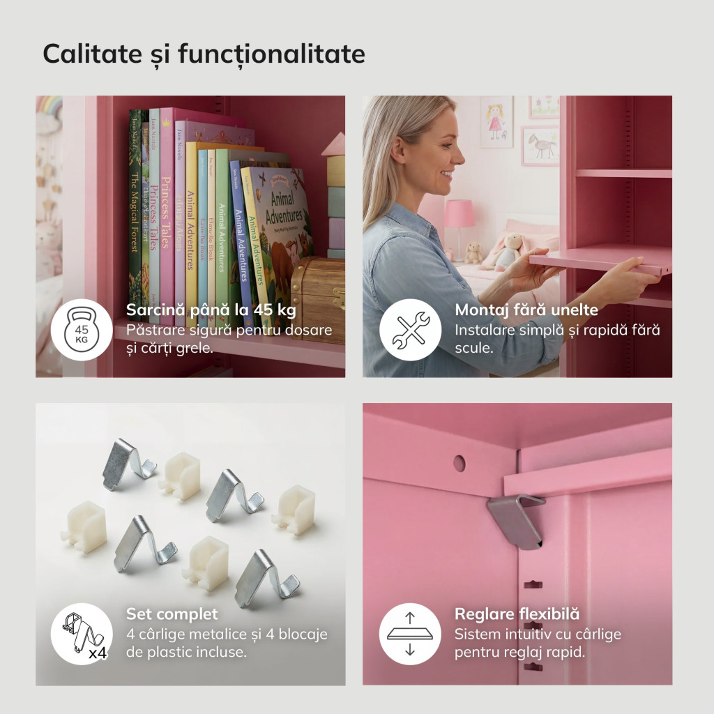 Az Alex FS szekrény polc ideális választás, ha szeretnéd feldobni a szobád hangulatát egy kis színnel és stílussal. A rózsaszín árnyalat nemcsak vidámságot kölcsönöz, hanem a modern lakberendezési trendekkel is lépést tart. Kompakt méreteinek köszönhetően bármelyik szobában könnyedén elfér, miközben praktikus tárolási lehetőséget biztosít könyvek, dísztárgyak vagy egyéb kiegészítők számára.