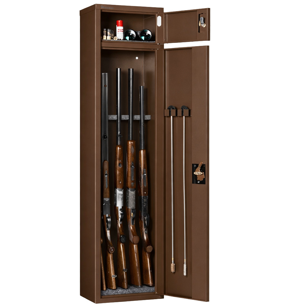 A csomag tartalmazza a 2 db rögzítési szettet (dübel/csavar), 2 db egyedi sorszámmal ellátott kulcsot a lőszertartóhoz, 2 db egyedi sorszámmal ellátott kulcsot a fegyvertartó rekeszhez, továbbá a tusatartót, a szivacs fegyvertámaszt, valamint az összeszerelési útmutatót.