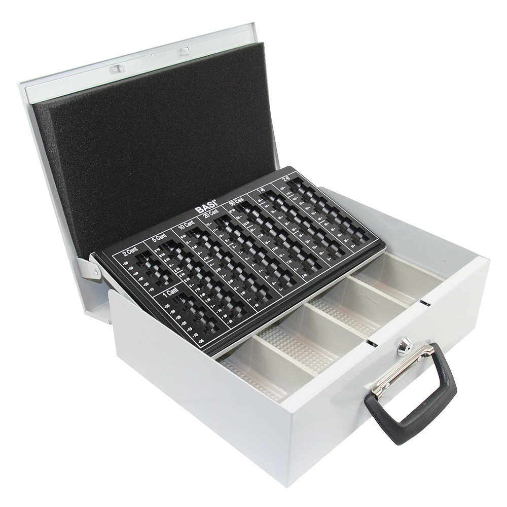 A Basi EGK 150 egy strapabíró acéllemez pénztárkazetta, amelyet eurós érmék és bankjegyek biztonságos és rendezett tárolására terveztek.