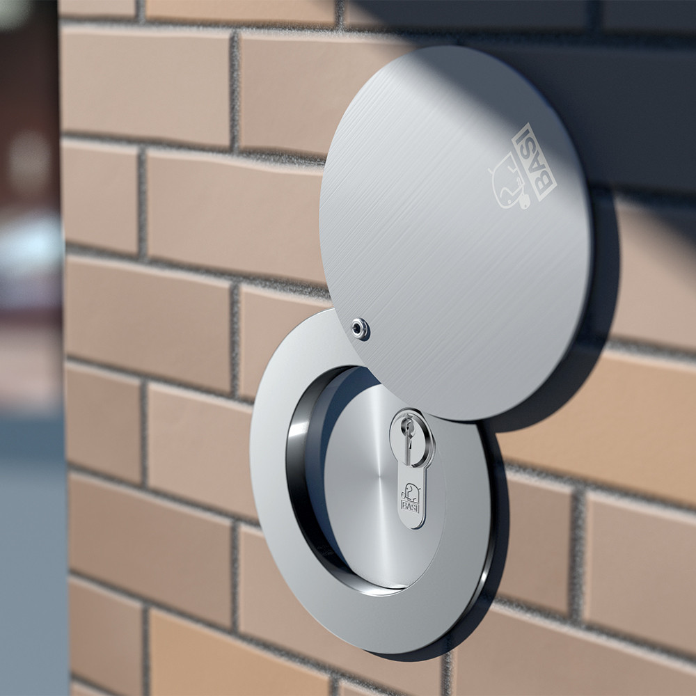 A Basi RT 103 S egy nagyméretű, beépíthető csőszéf, kifejezetten vészkulcsok és kis értékek biztonságos, rejtett tárolására. A termék masszív alumínium házzal és levehető rozsdamentes acél fedéllel készült; a fedél és a test közötti gumigyűrűs tömítés pedig fokozott védelmet nyújt a nedvesség és beszennyeződés ellen. A fedőelem elforgatható zártakaróval rendelkezik, és a széf 10/30-as félcilinderhez előkészített (a zárbetét nem része a csomagnak).