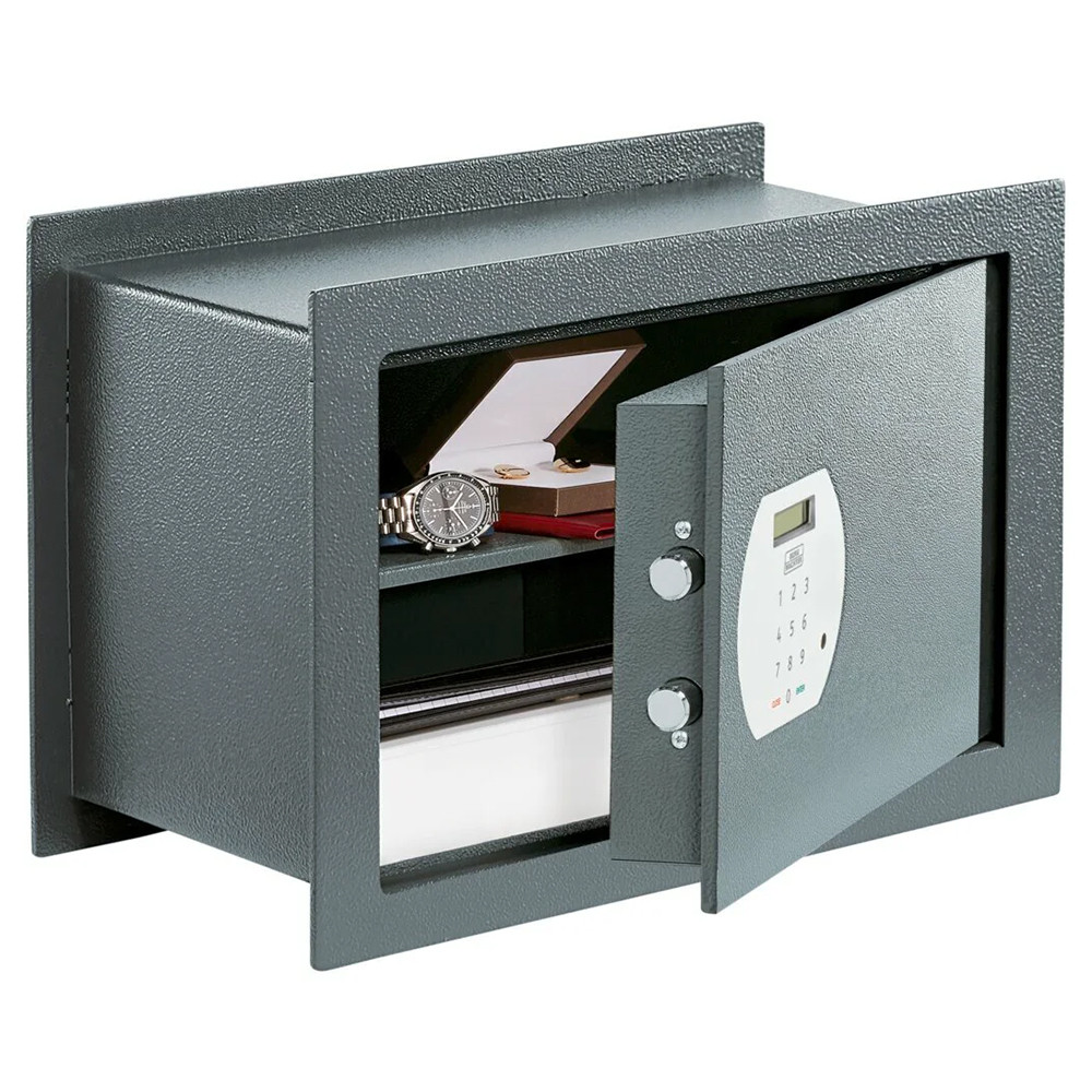 A széf falba építhető, így akár egy bútor vagy kép mögött is elrejthető, szinte láthatatlan védelmet nyújtva.