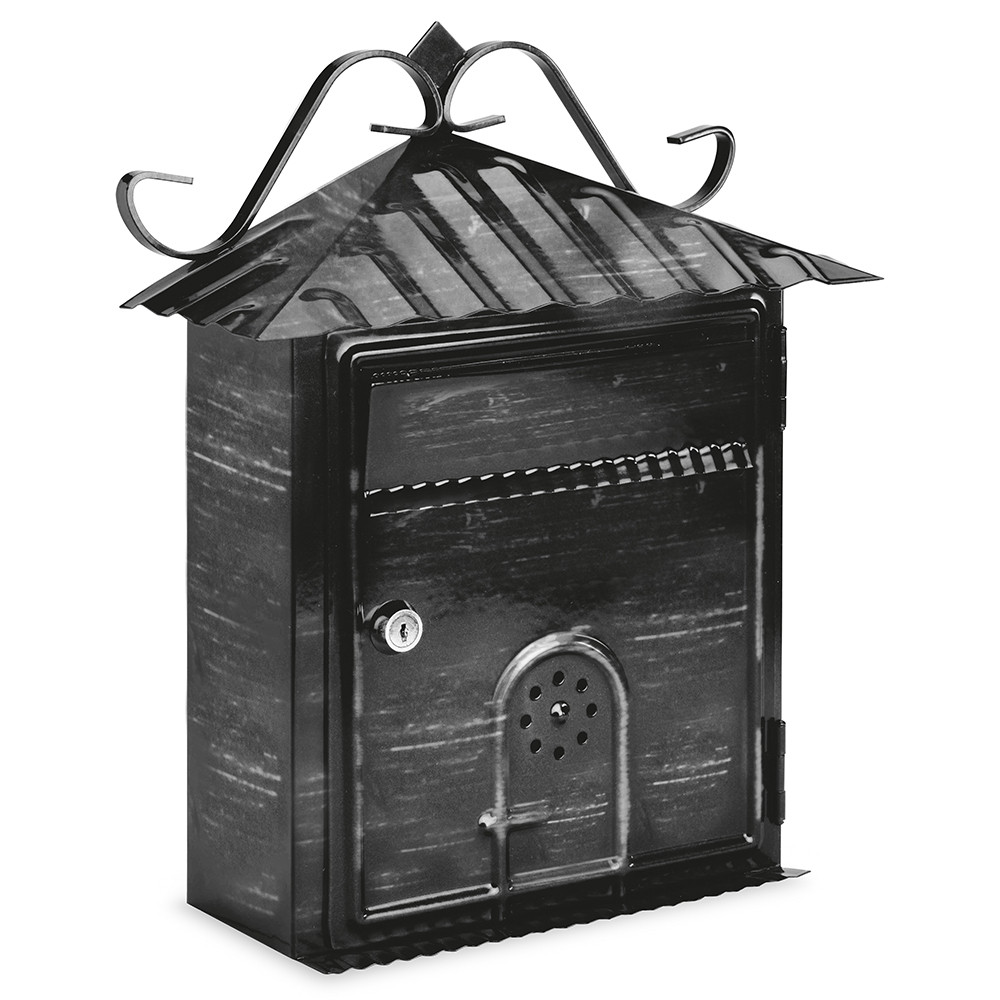 •kovácsoltvas jellegű postaláda•anyaga horganyzott acéllemez•elülső bedobónyílás•jobbra nyíló postaláda ajtó•lamellás zár kettő darab kulccsal•hátoldalán rögzítő furattal