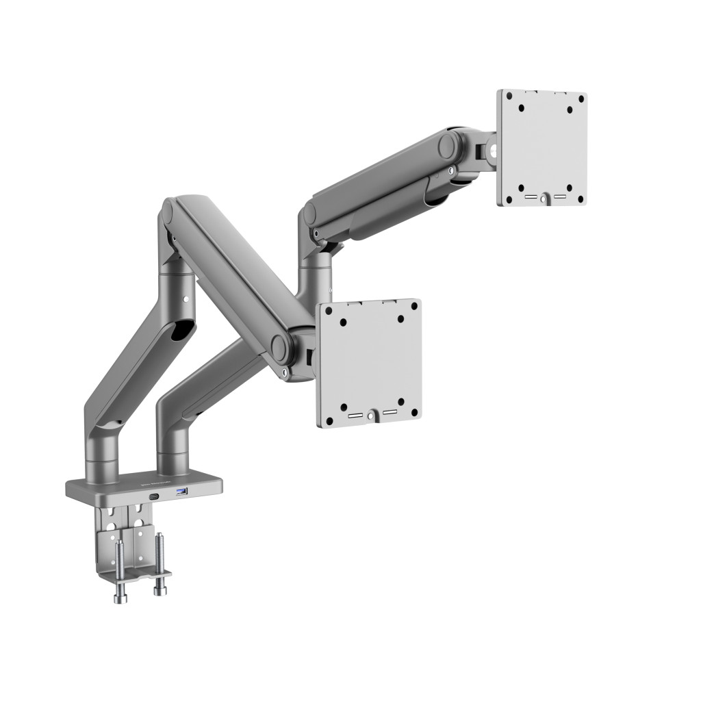 Termékleírás – JAKE fém dupla monitorállvány, szürke