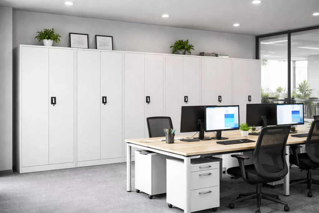 A kivitel 2 ajtóval készül, ami kényelmes hozzáférést biztosít a teljes belső térhez, így a szekrény napi használat mellett is könnyen kezelhető marad. A belső elrendezés 4 polccal segíti a dokumentumok rendszerezését, ezért alkalmas lehet ügyviteli anyagok, irattári dobozok, mappák vagy egyéb irodai kellékek elkülönített tárolására. A nagyobb 900 mm-es szélesség és 400 mm-es mélység miatt a szekrény még jobb helykihasználást ad, ha több iratot kell egy helyen biztonságosan és áttekinthetően elhelyezni.