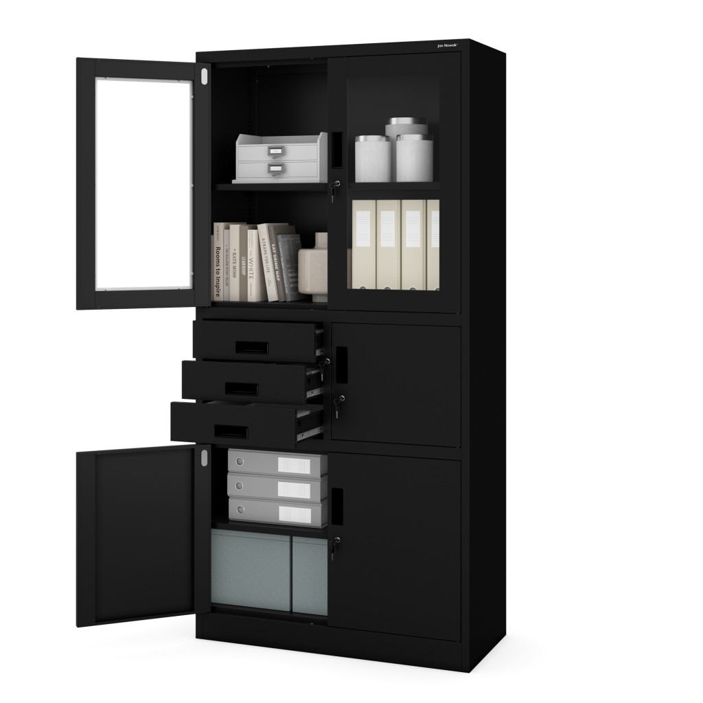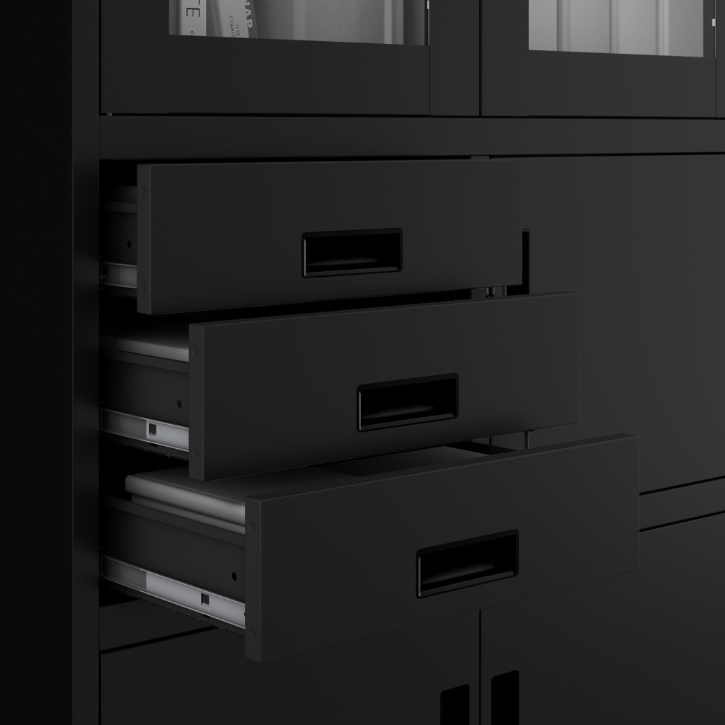 Az elegáns fekete szín és a letisztult dizájn bármely irodai környezetbe illeszkedik, professzionális és rendezett megjelenést kölcsönözve az irodának. A FILIP szekrény tökéletesen egyesíti a funkcionalitást a stílusos megjelenéssel.