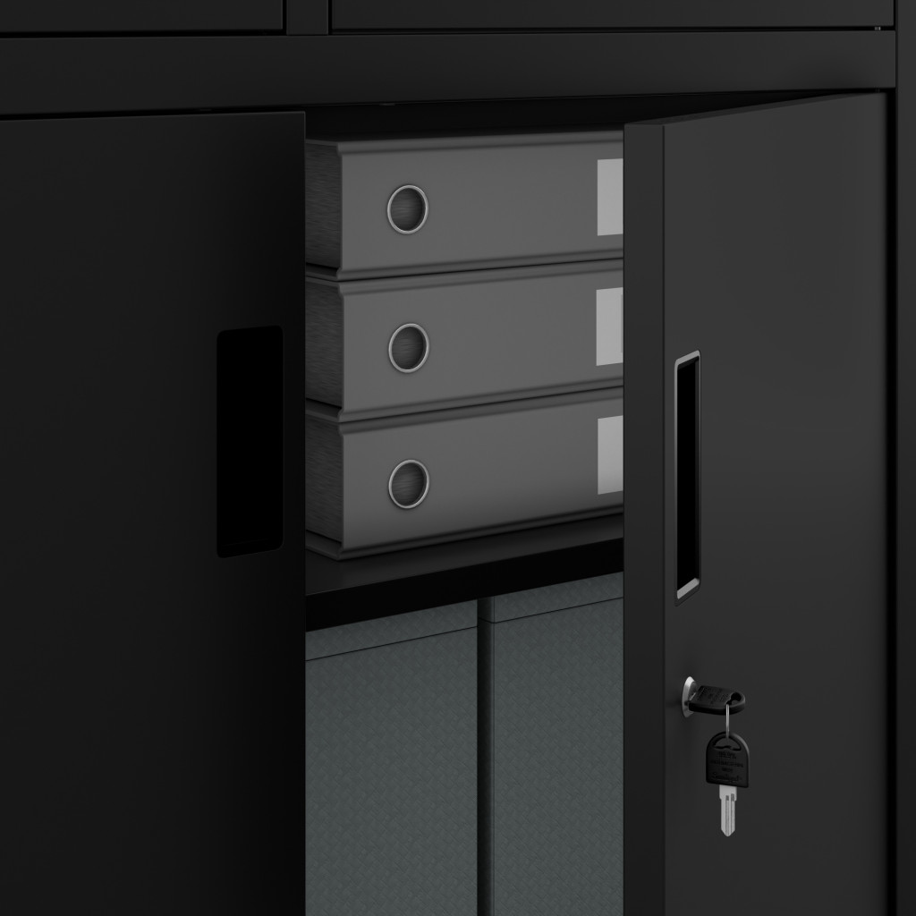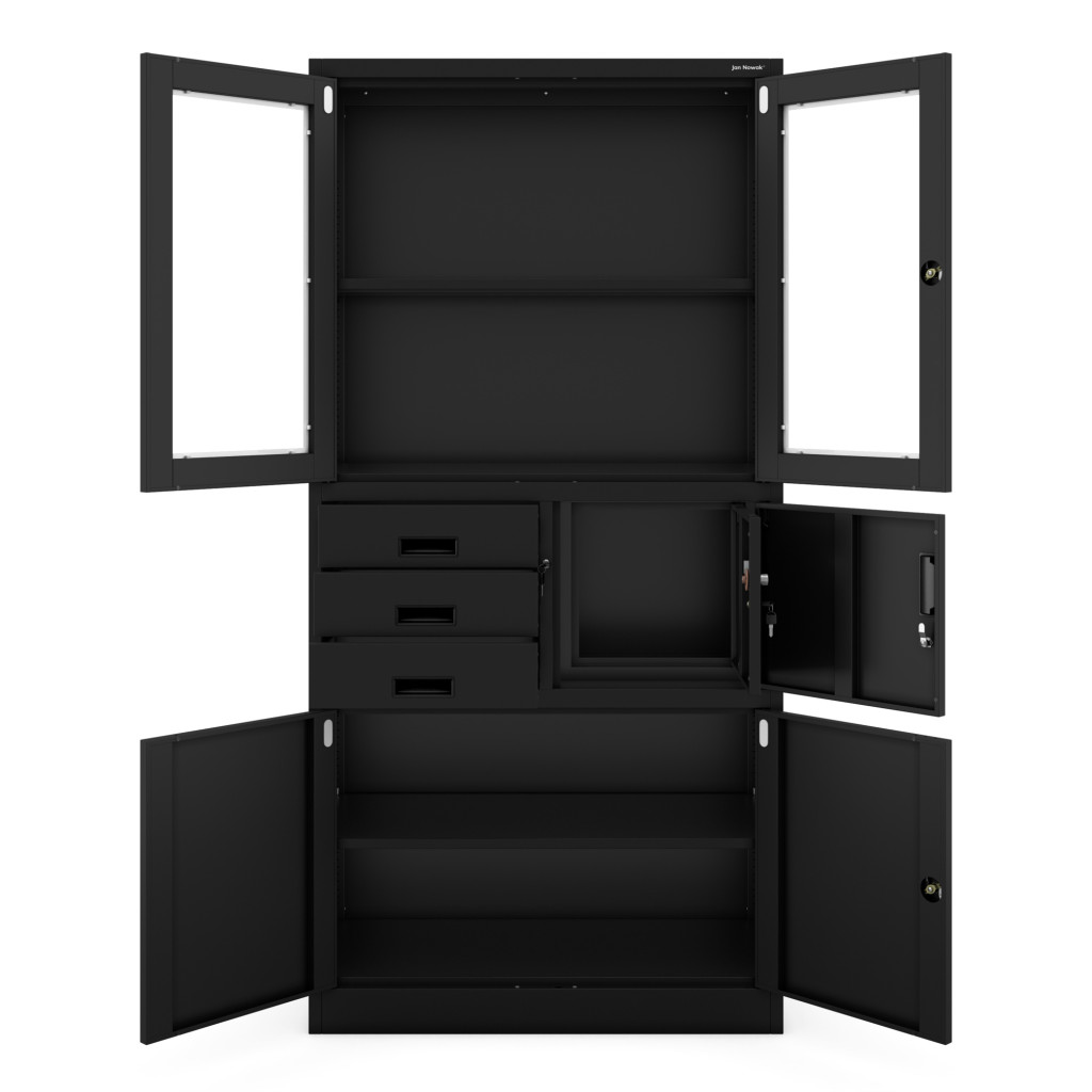 A szekrény számos polccal rendelkezik, amelyek lehetővé teszik a dokumentumok rendszerezett tárolását. A beépített széf fiók extra biztonságot nyújt, így a legfontosabb iratok és értéktárgyak mindig védve vannak.